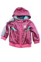 Adidas pink with print hooded windbreaker in size 6-9m (0). Polyester.
