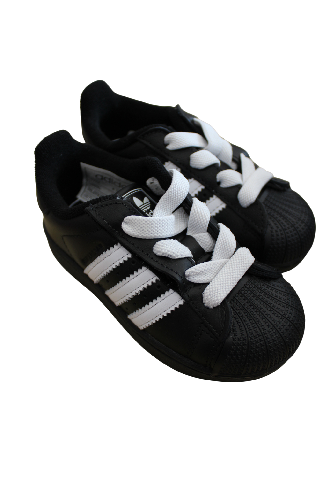 Step into fun with these black Adidas Superstar II sneakers made just for kids! Designed for little feet, these shoes blend sporty style with comfort, perfect for playground adventures or casual days out. The classic Adidas look adds a cool edge that kids will love, while durable soles keep up with every step and skip. Easy to wear and built to last, they’re the perfect kickstart to any young explorer’s day. New!