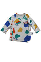 Aimer Baby wrap top in cream with abstract print and 'Create' applique, size 00. Modal/viscose/elastane.