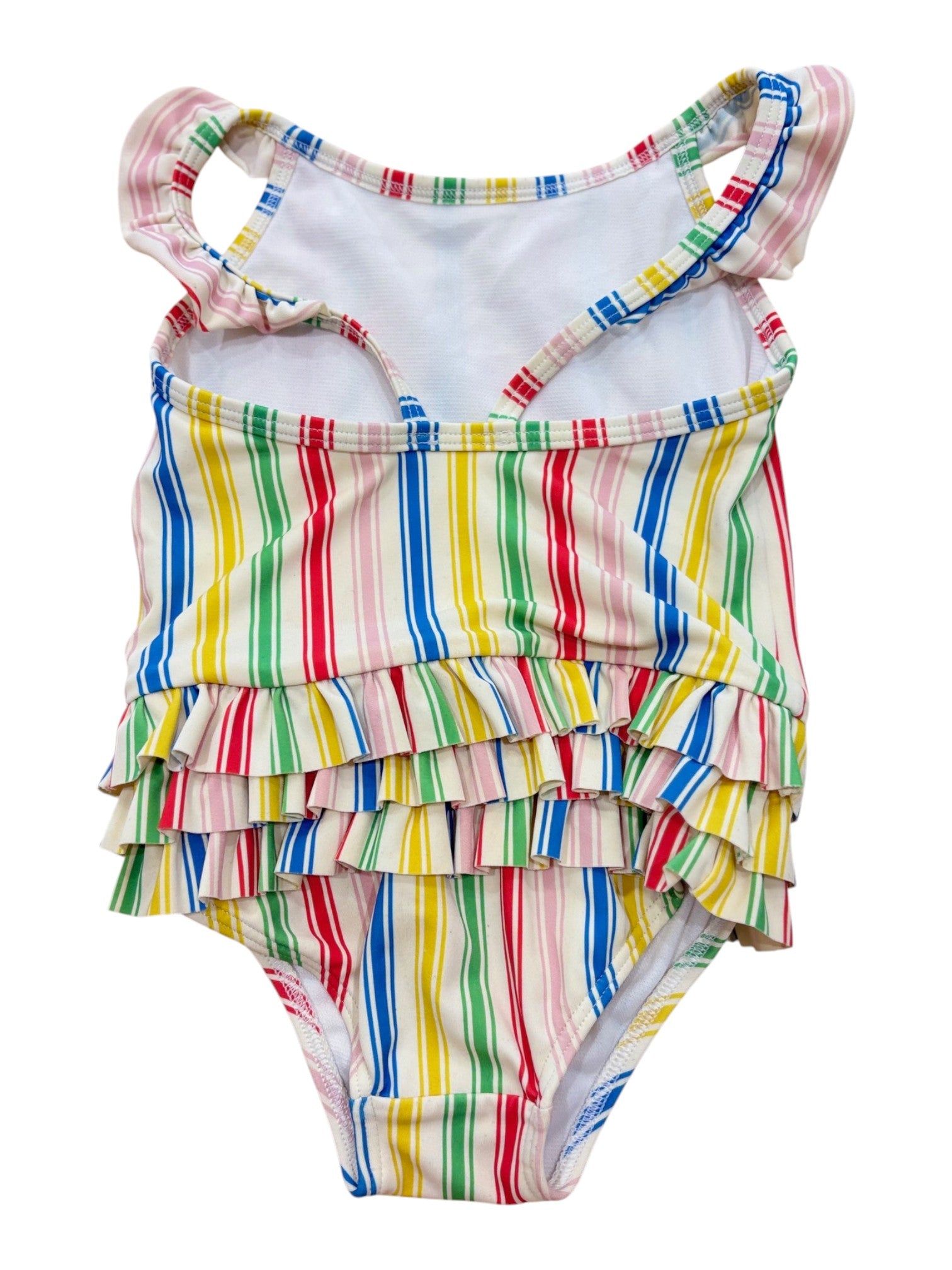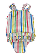Splash into summer with this charming Baby Boden cream one-piece featuring vibrant rainbow stripes and sweet ruffle details! Made from polyamide and elastane for stretch and durability, it's perfect for little swimmers.