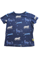 Band of Boys navy t-shirt with all over tiger print, size 4. 100% cotton.