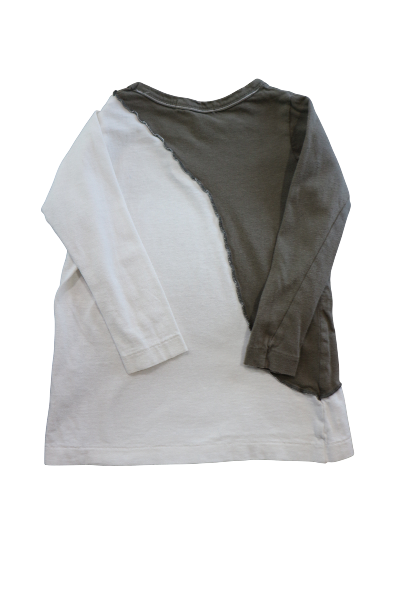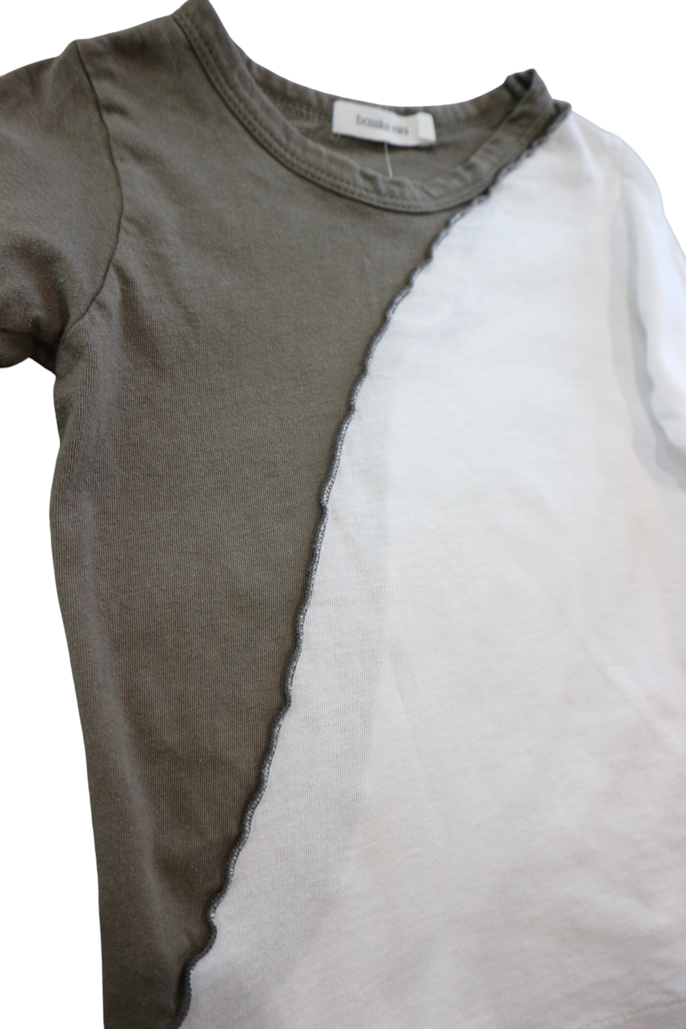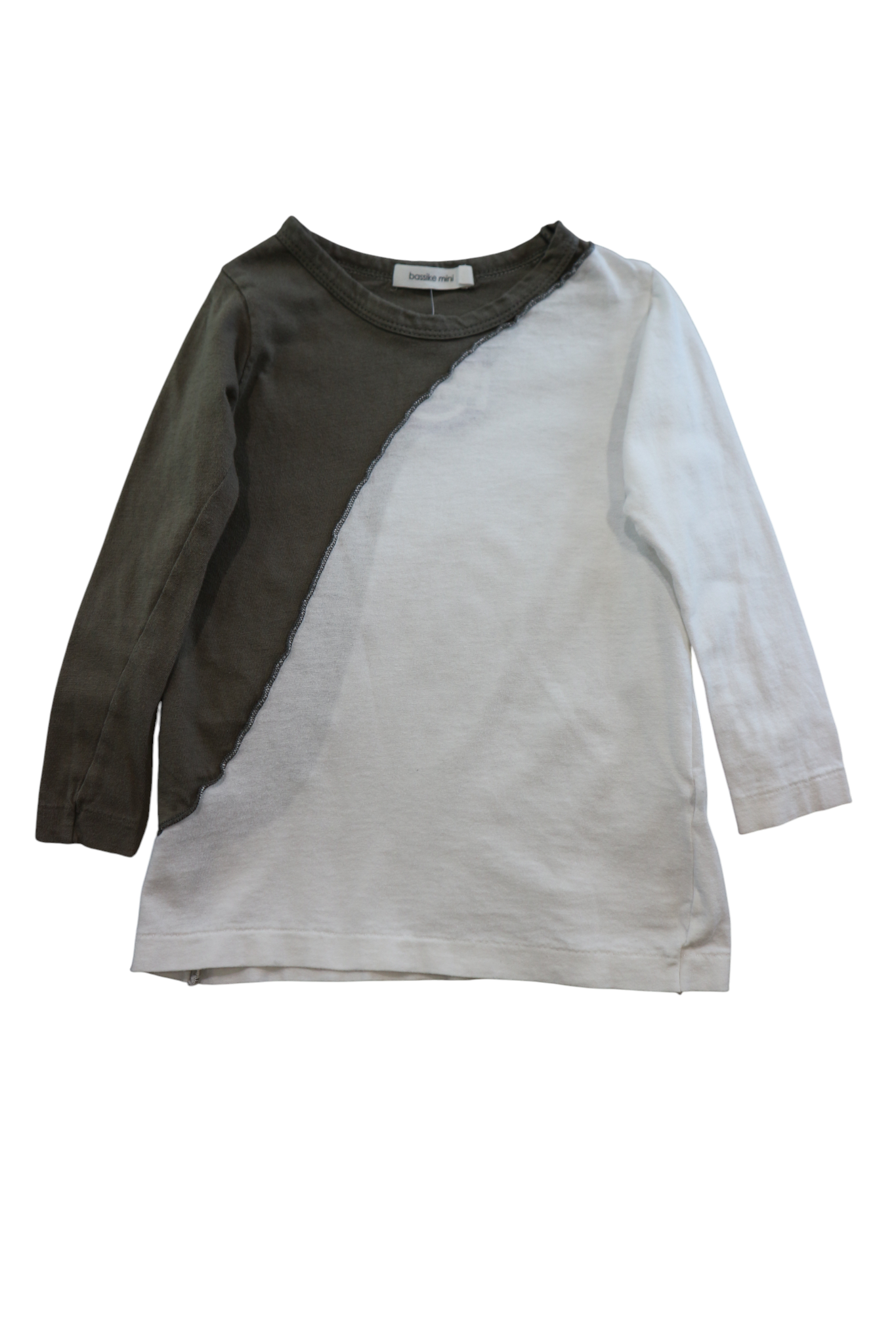 Bassike Mini long-sleeved top in khaki and white, size 2. Organic cotton.