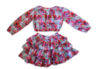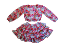 This set features a playful, matching billowy crop top and ruffle tiered skirt set. Made from light cotton with a charming floral print. The elasticated wrists, neckline, and bottom of the top allows for comfortable movement and a perfect fit for all-day fun.