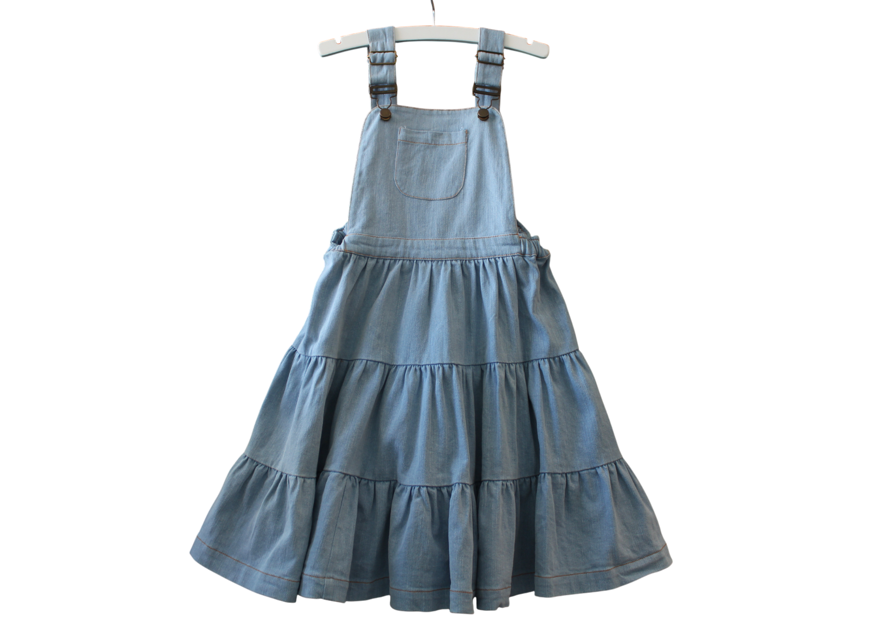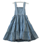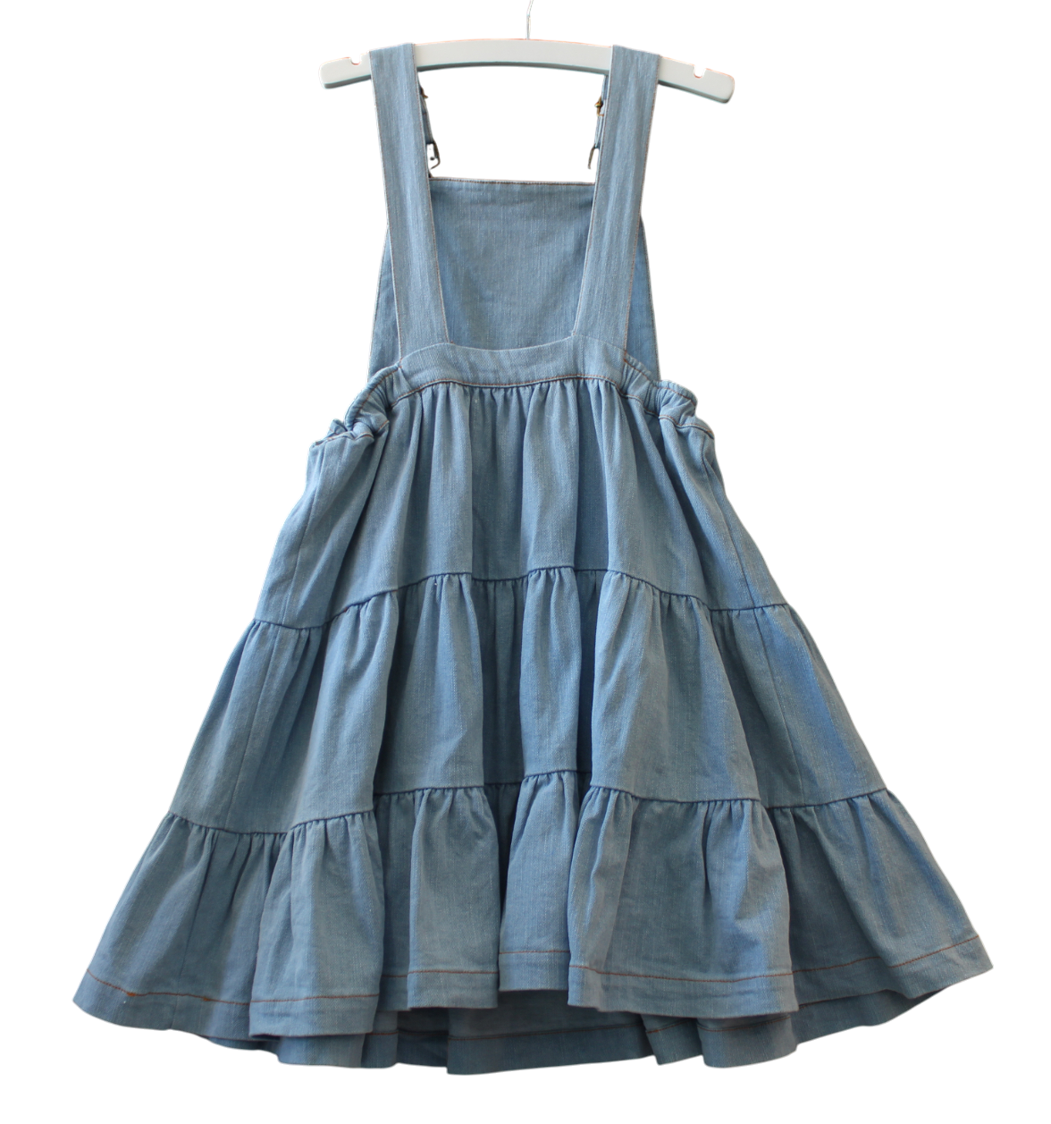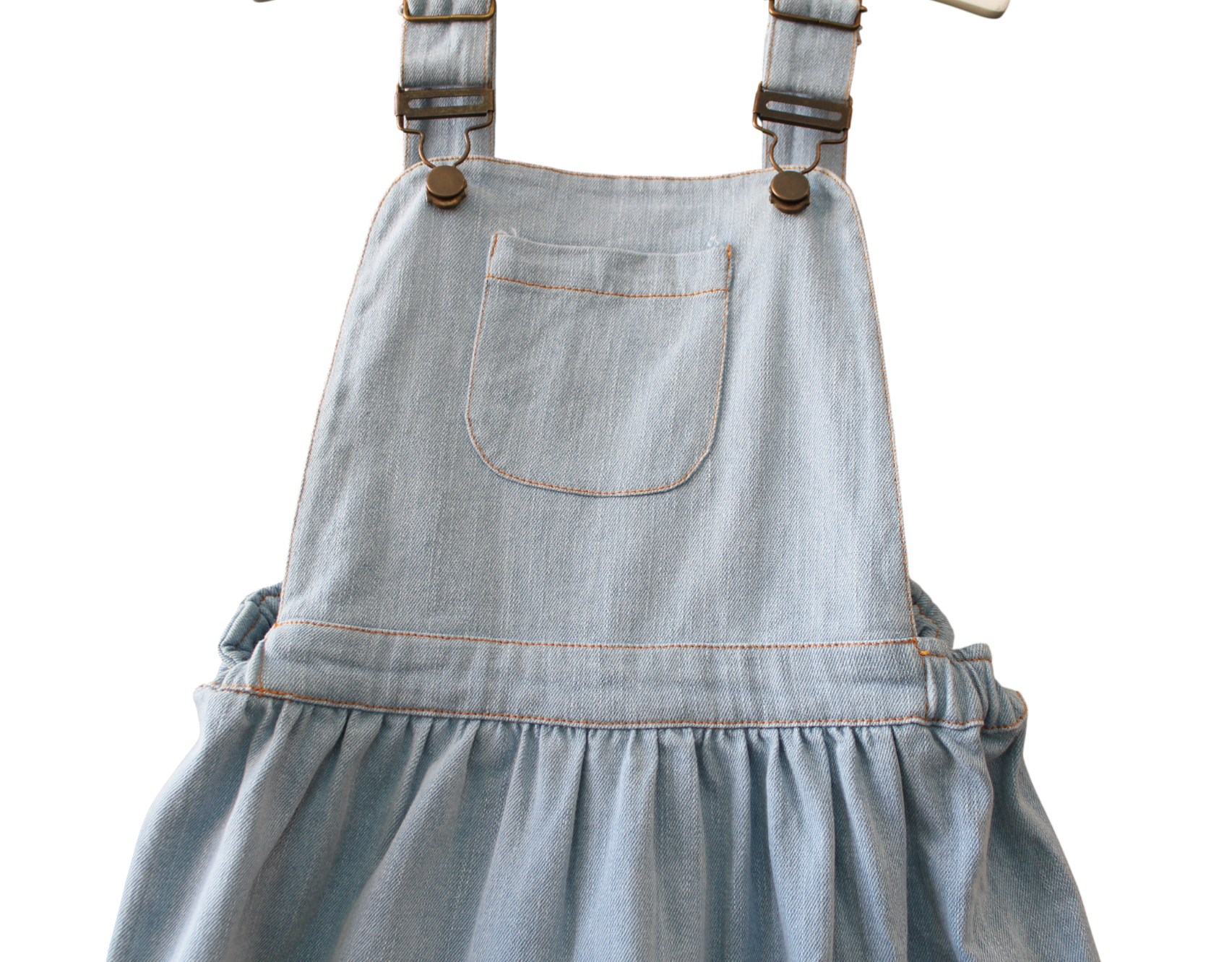 This denim pinafore dress features playful ruffled skirting and a comfy elasticated waist, making it perfect for twirling and everyday adventures. Crafted for ease and style, it’s a charming addition to any little one’s wardrobe.