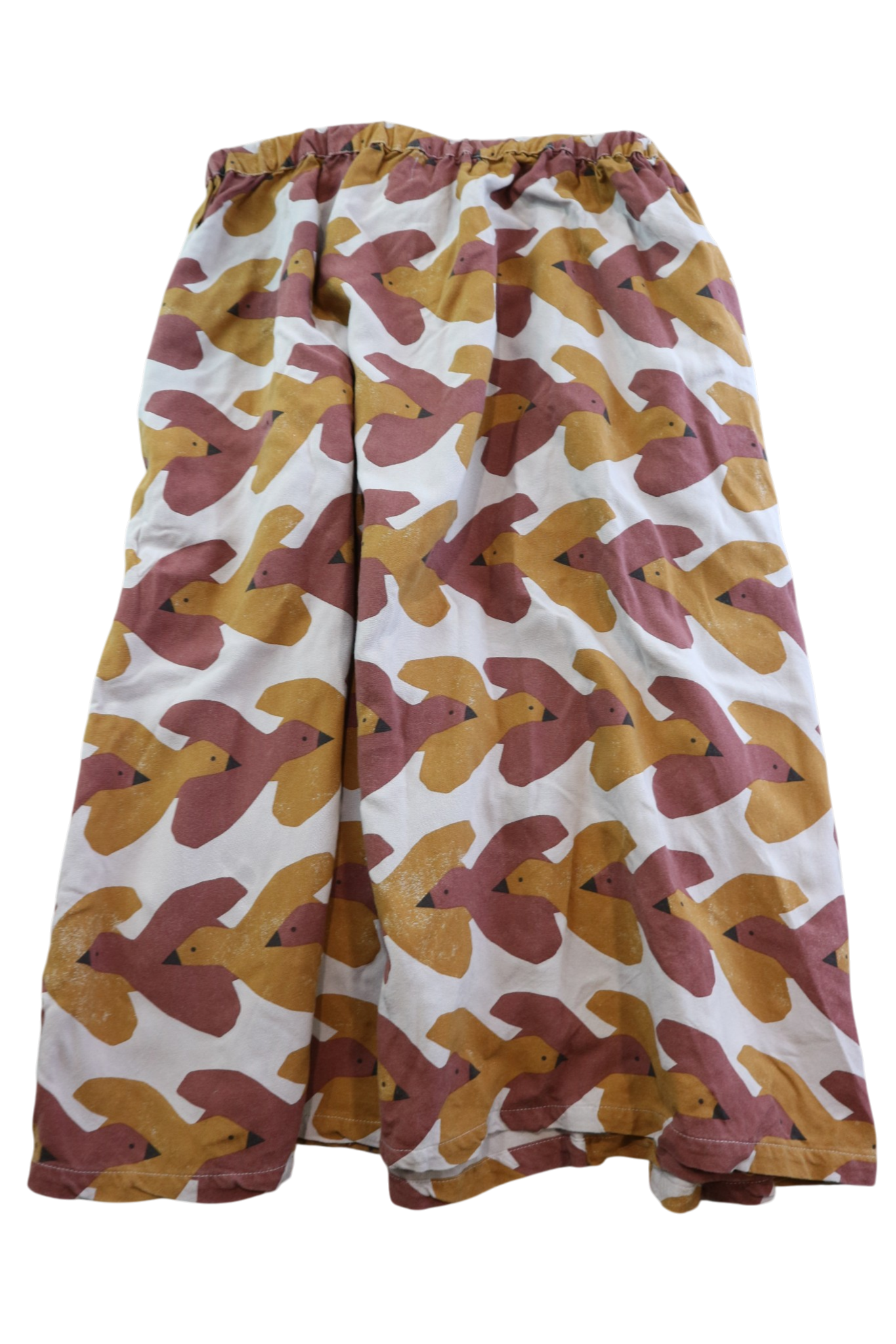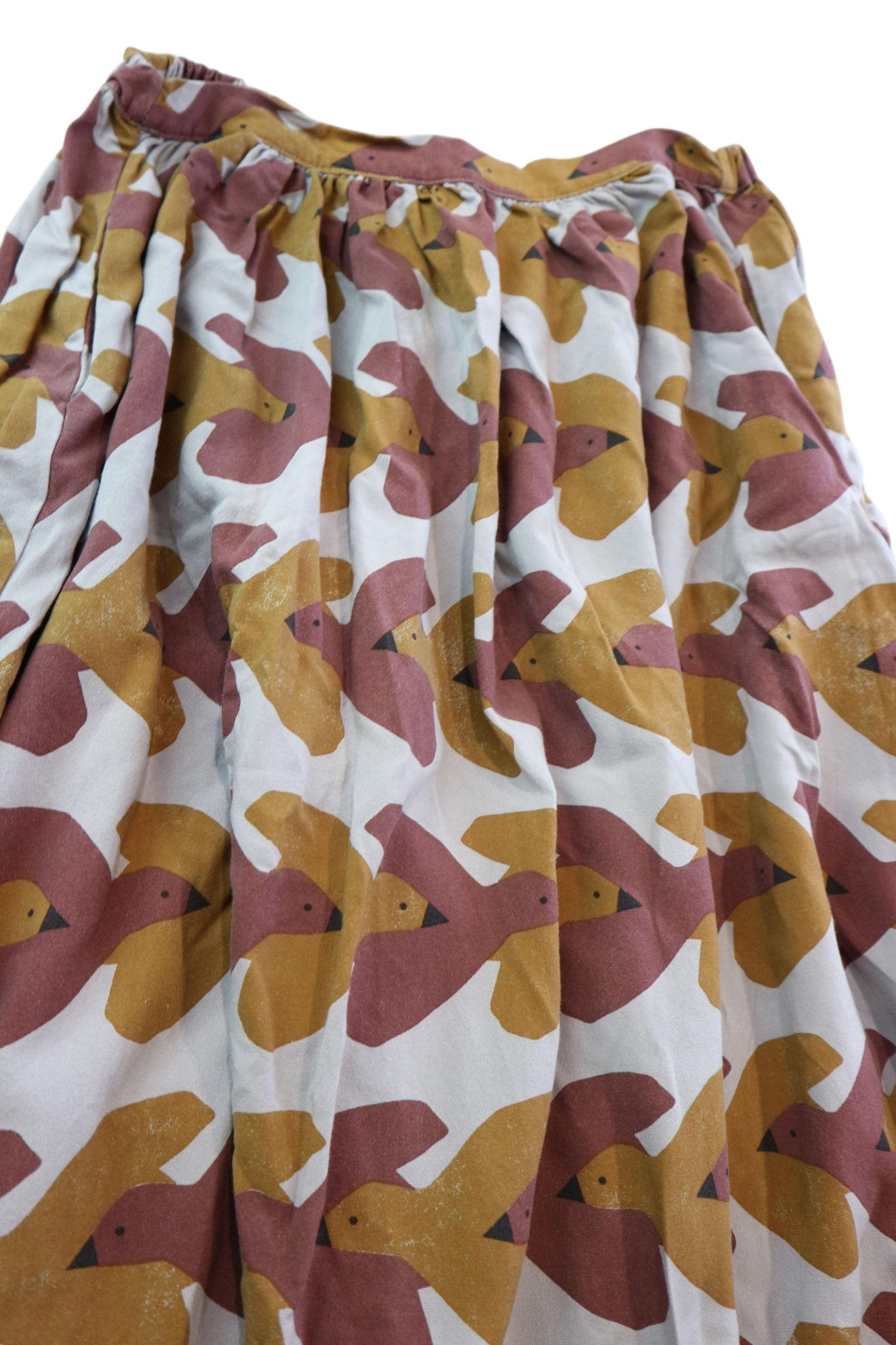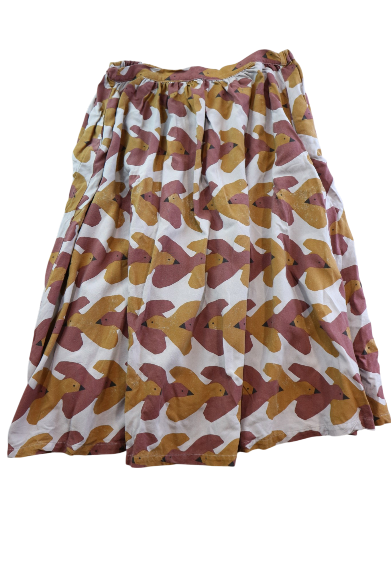Bobo Choses midi skirt in grey with brown bird print, size 10-11yrs. Ecovero viscose.