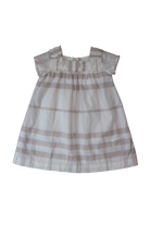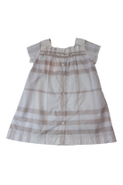 Grab this stunning wide check cream and brown Burberry dress. Square gathered neckline detail front and back. Six complete openings in the back for easy dressing. Wide hem and back vent to complement the aline loose fit.