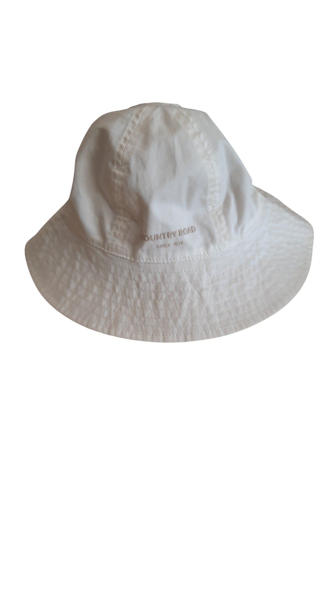 Country Road baby white and beige reversible hat with neck fastening. 100% cotton. One size.
