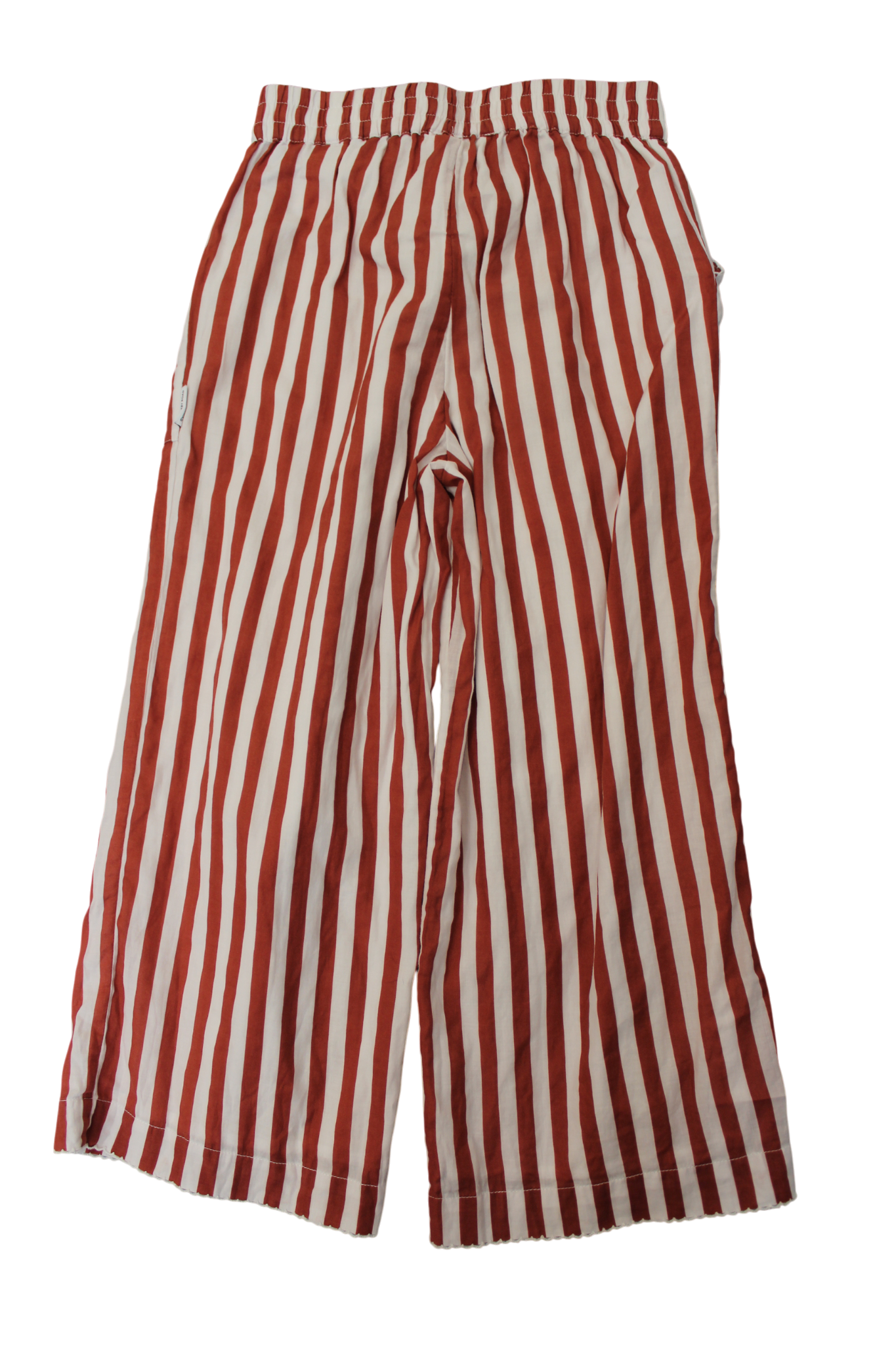 These playful loose pants for kids feature bold white and dark red stripes, perfect for energetic days filled with fun. Designed for comfort and style, they offer room to move freely while adding a splash of color to any outfit. Ideal for casual adventures or relaxed weekends, these pants make dressing easy and cheerful. Good preloved condition.