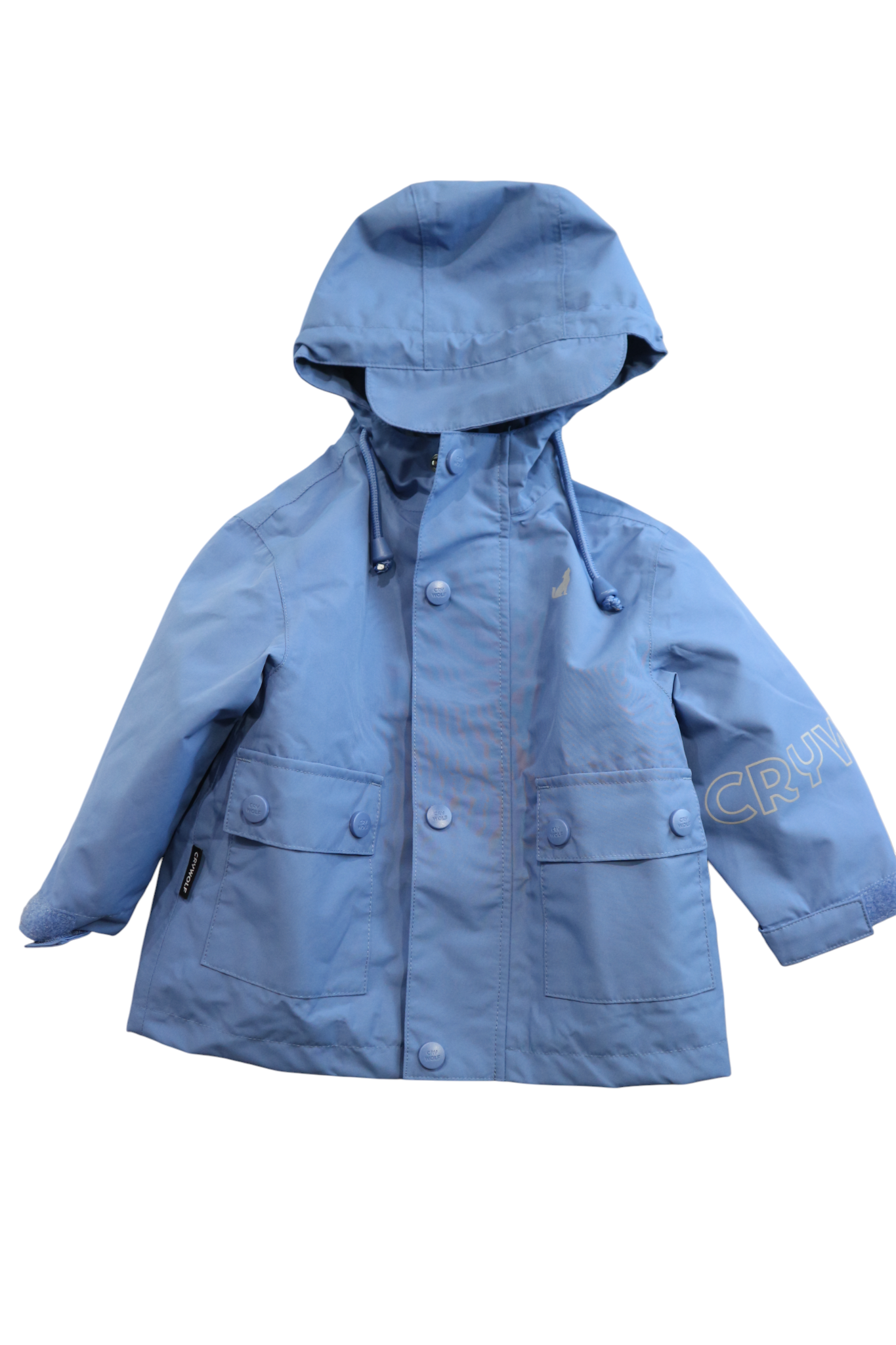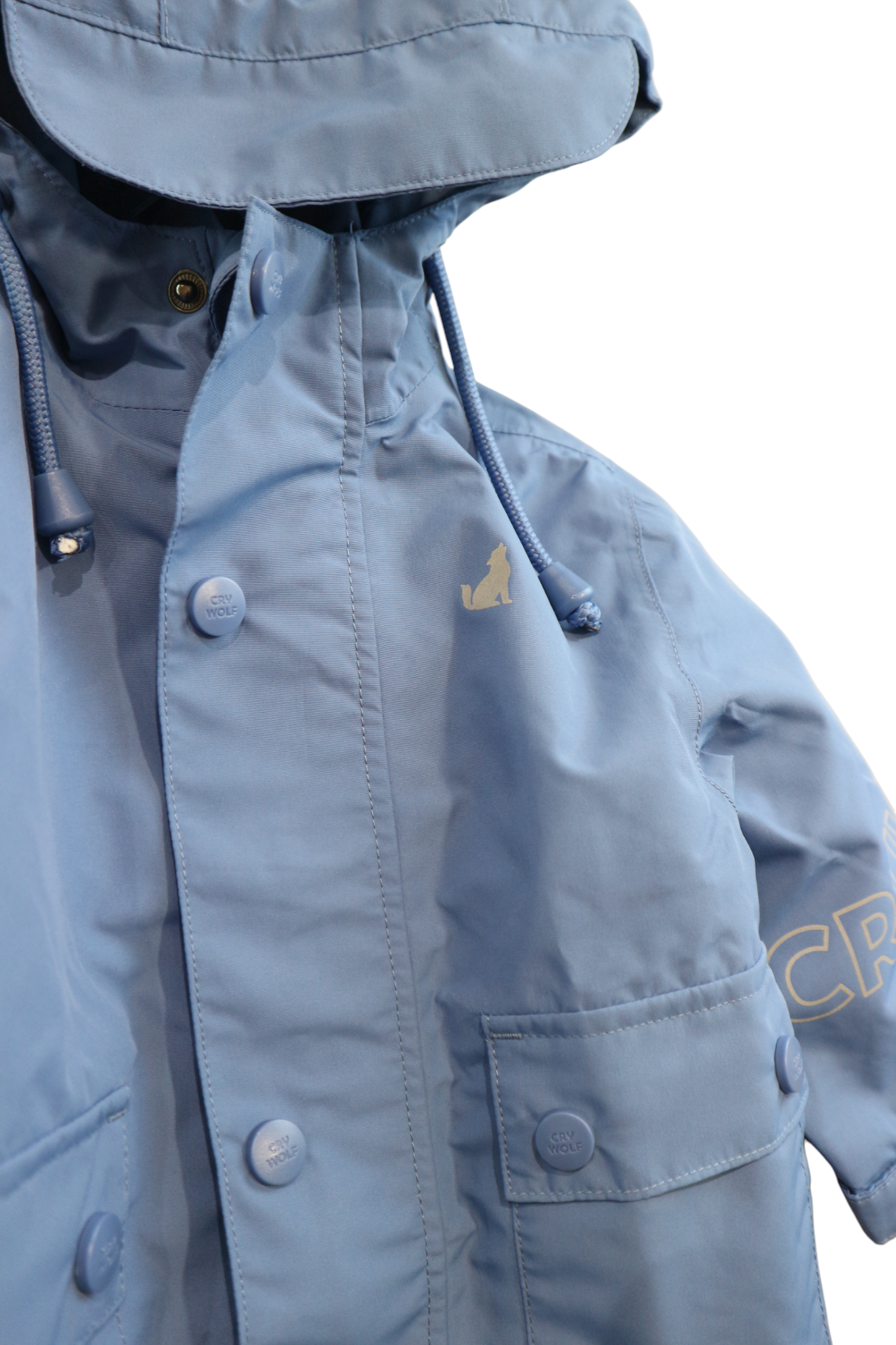 Cry Wolf blue raincoat with grey cotton lining, size 1. Recycled polyester.