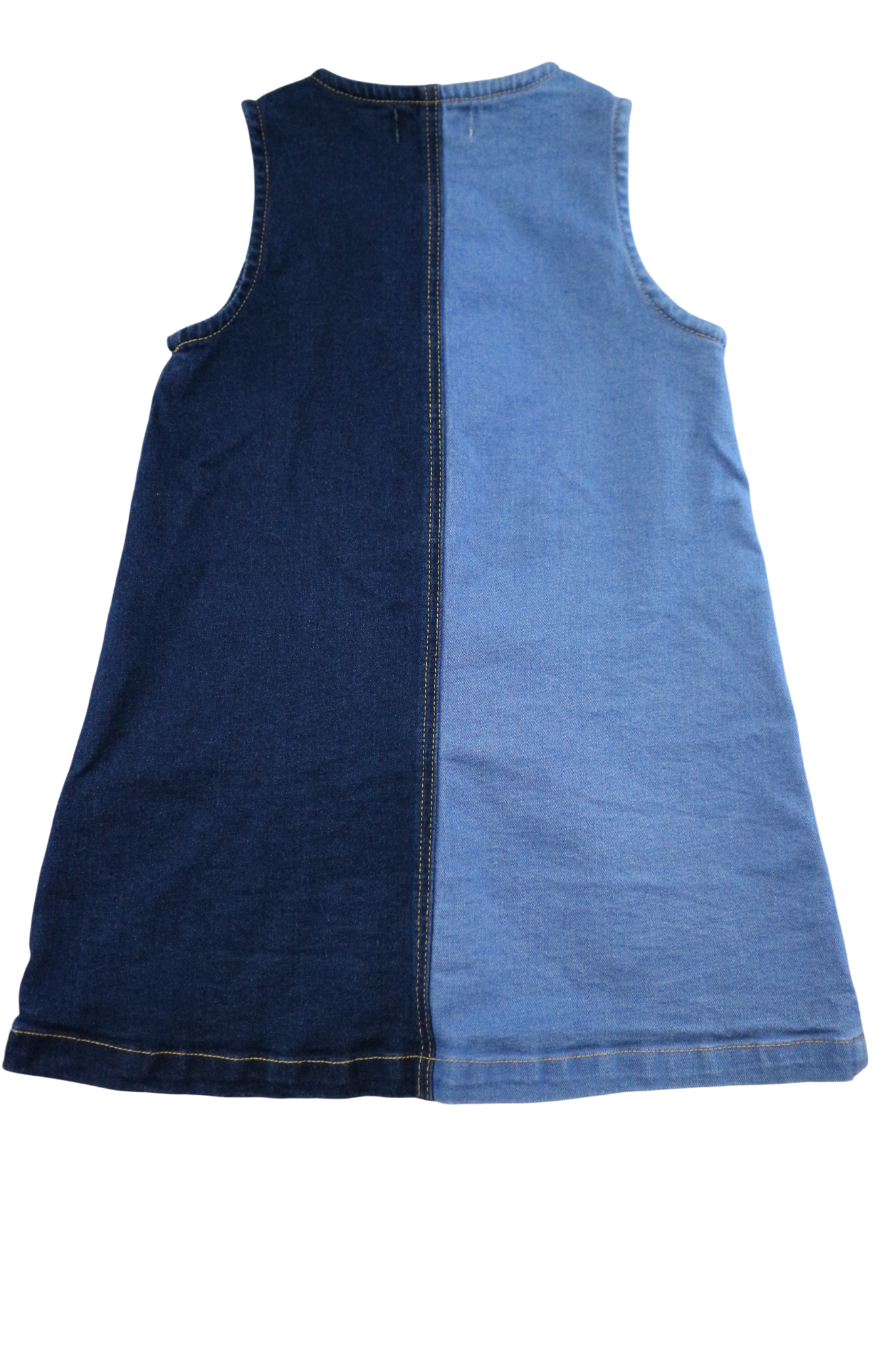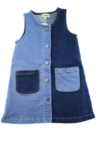 Adorable two-toned denim pinafore that's perfect for little adventurers! This charming dress features contrasting denim panels that add visual interest and style. The classic pinafore silhouette is timeless and versatile, easily layered over tees or long sleeves for year-round wear. Durable denim construction means it'll handle all the playtime fun while looking effortlessly cool. A must-have piece for any kid's wardrobe!