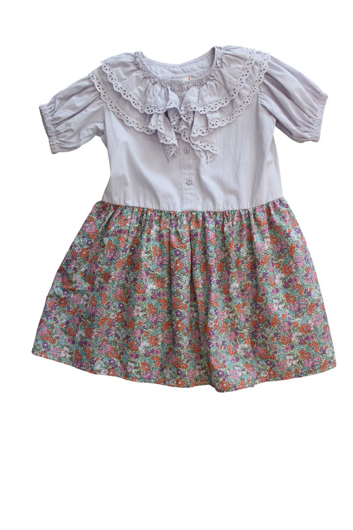 The Dougal Dress in size 10 combines a soft lilac top with a delicate lacy collar and a charming floral skirt, creating an enchanting outfit for any special occasion. Its lightweight fabric ensures comfort while the feminine details add a touch of elegance, making it perfect for your child to shine with style and confidence. New!