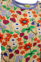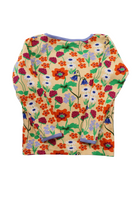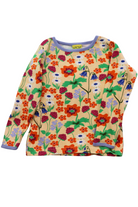 DUNS long-sleeved top in peach with floral print, size 98 (3yrs). Organic cotton.