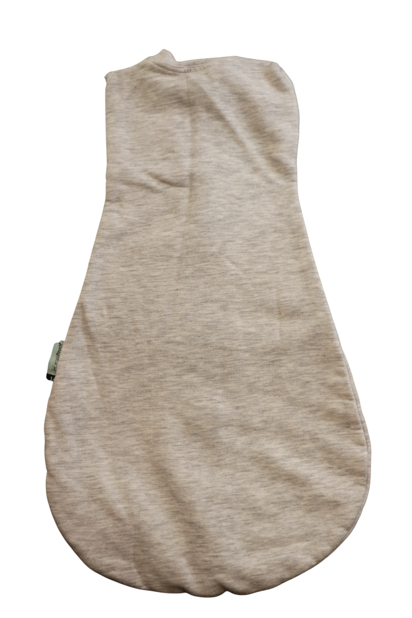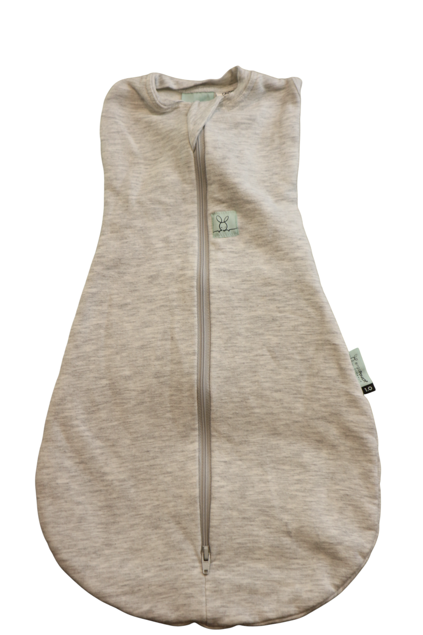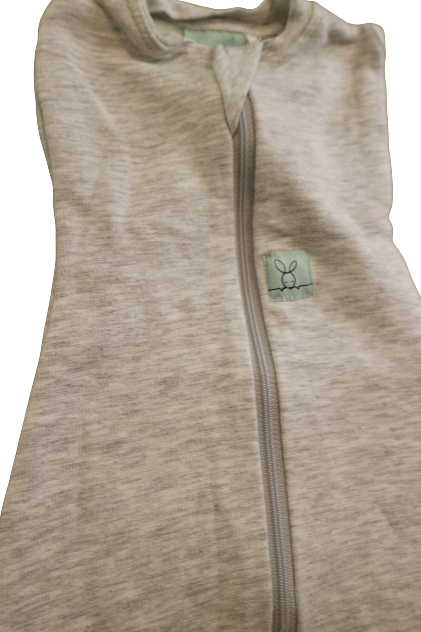 Ergopouch sleeping bag with arm button closures in grey, size 0000. 1.0TOG. Organic cotton/bamboo viscose/elastane.