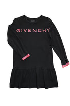 Givenchy logo print long-sleeved dress in black, size 6. 100% cotton.