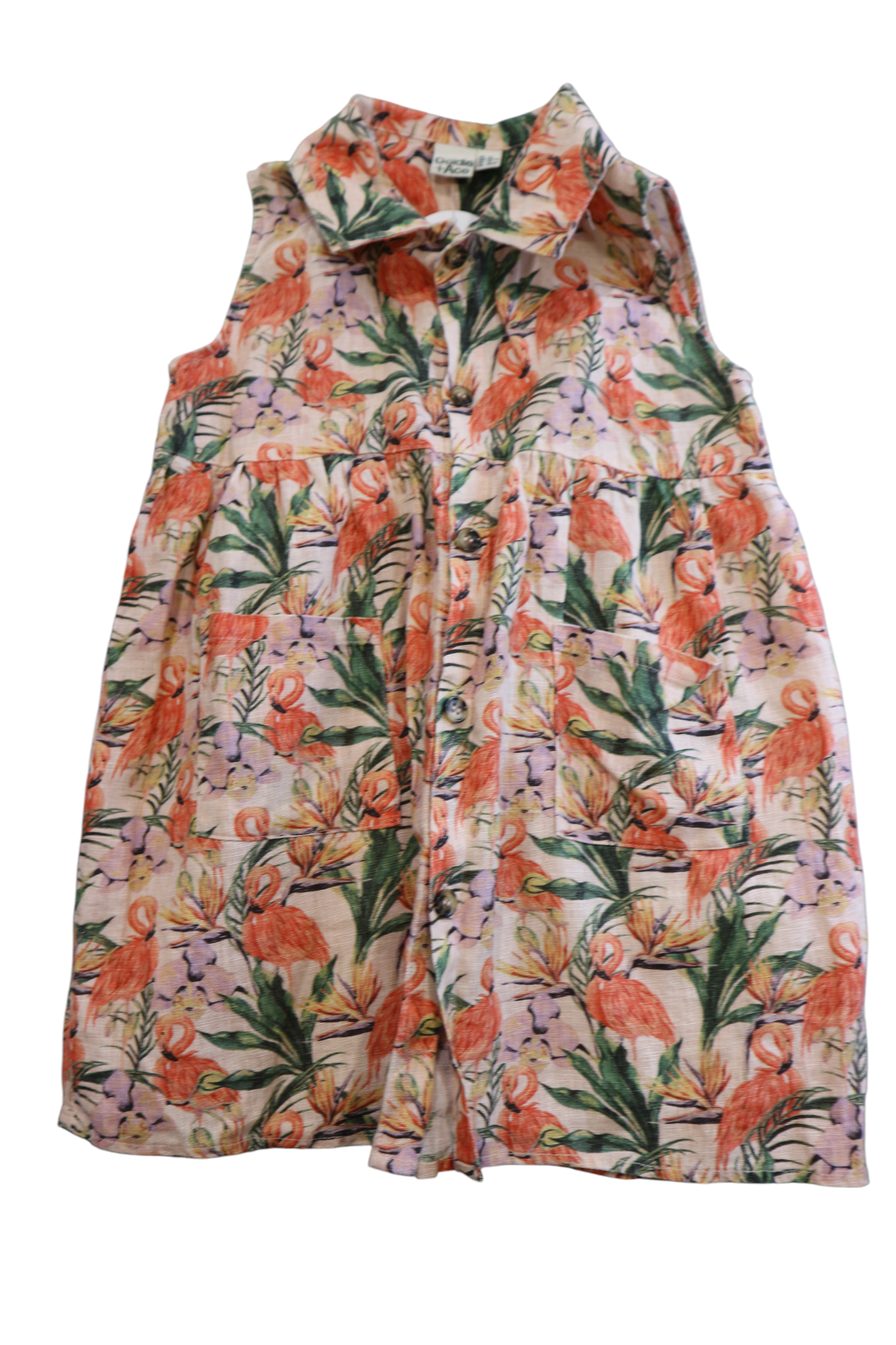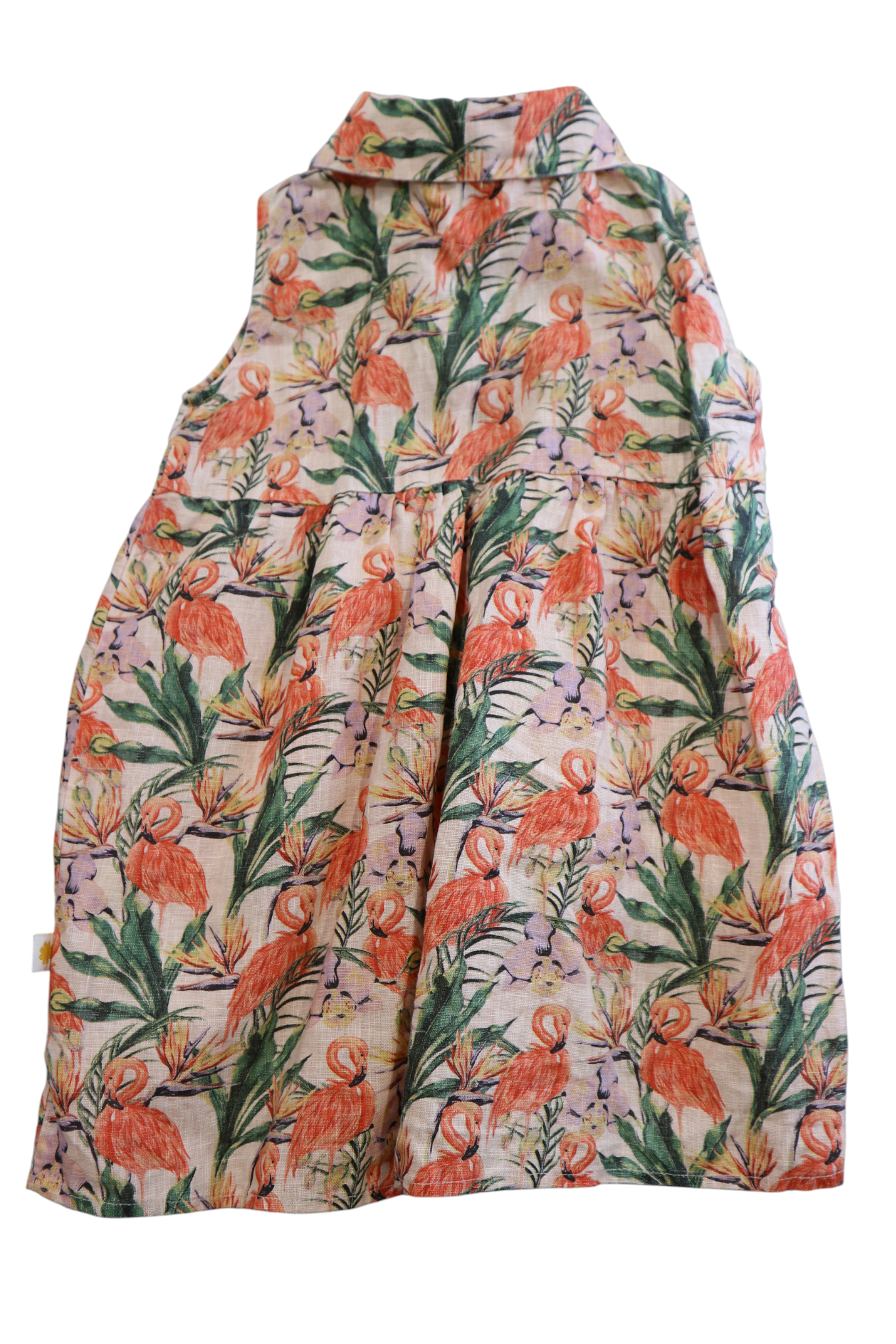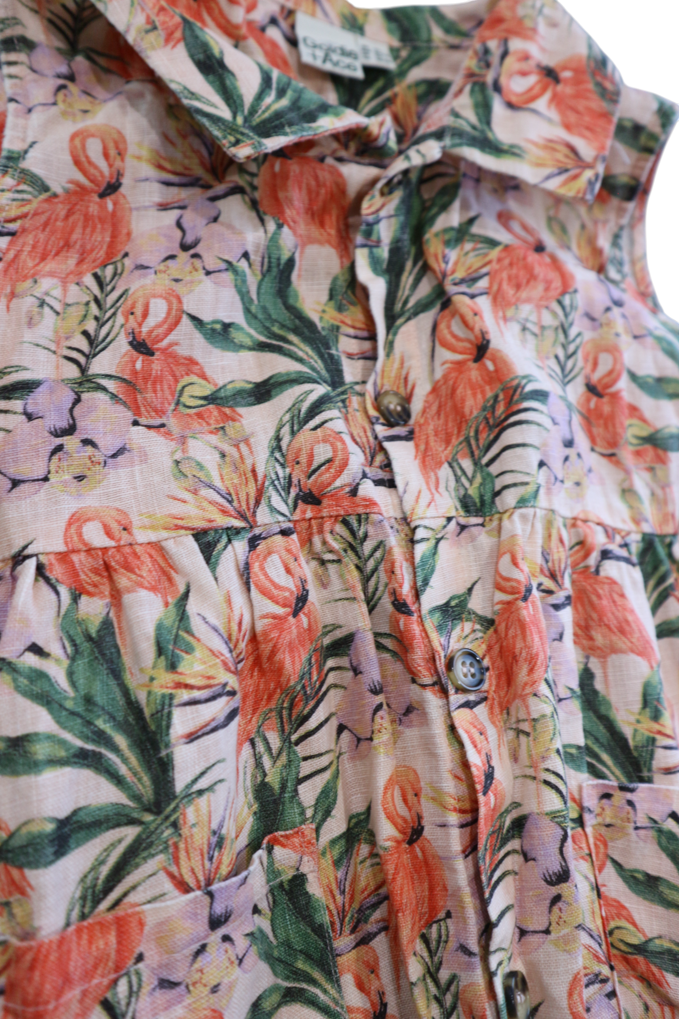 Goldie + Ace pink collared flamingo print shirt dress in size 5. 100% Linen.