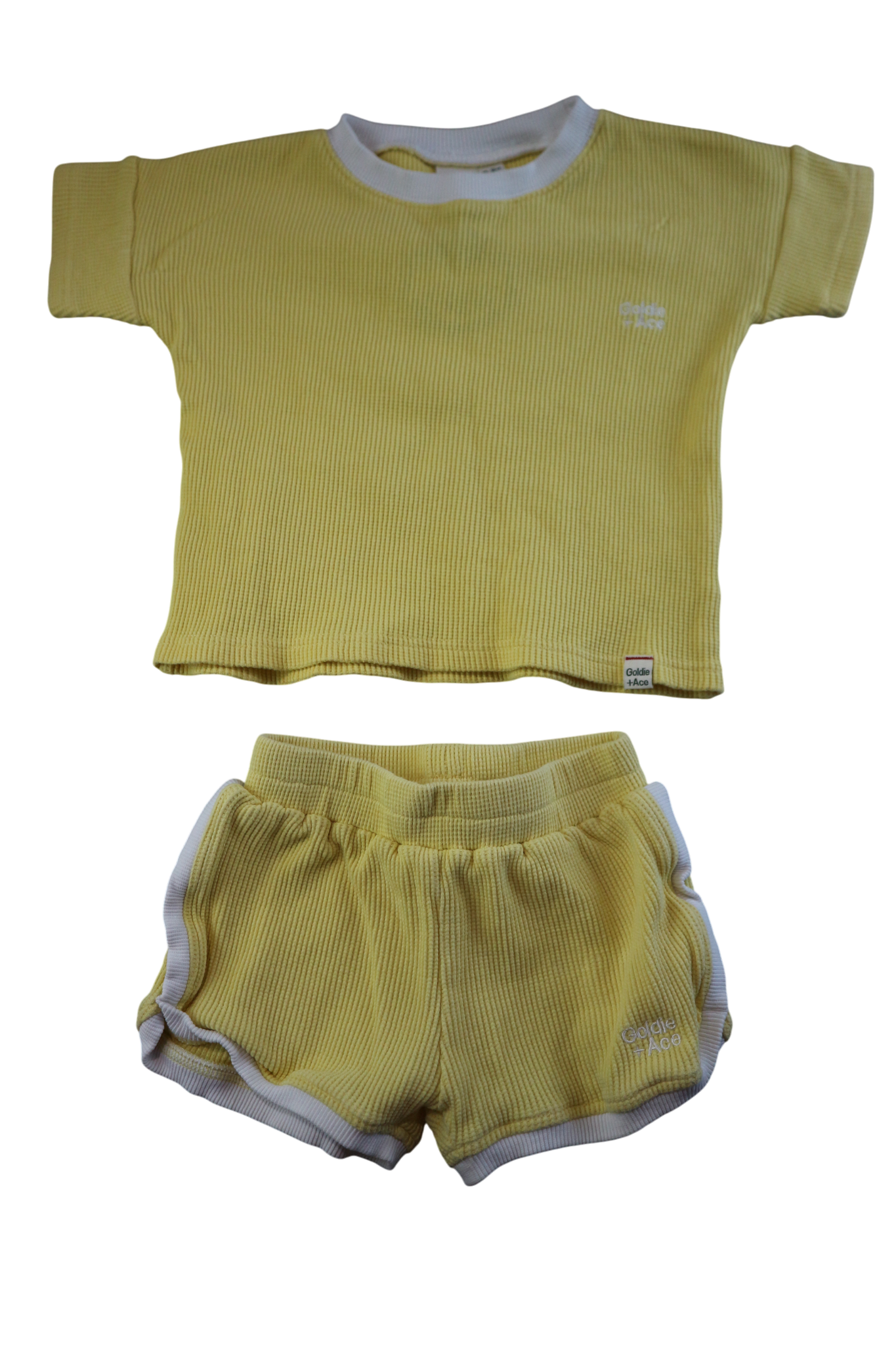 Introducing the perfect playtime duo! This cheerful yellow waffle set features two coordinating pieces designed for little ones who love comfort and style. The soft, breathable waffle fabric keeps toddlers cozy throughout the day, while the playful yellow hue brings sunshine to any wardrobe. Mix and match the shirt and tee for endless outfit combinations that let your child's personality shine. Ideal for everyday wear, playdates, or casual adventures.