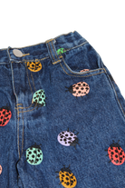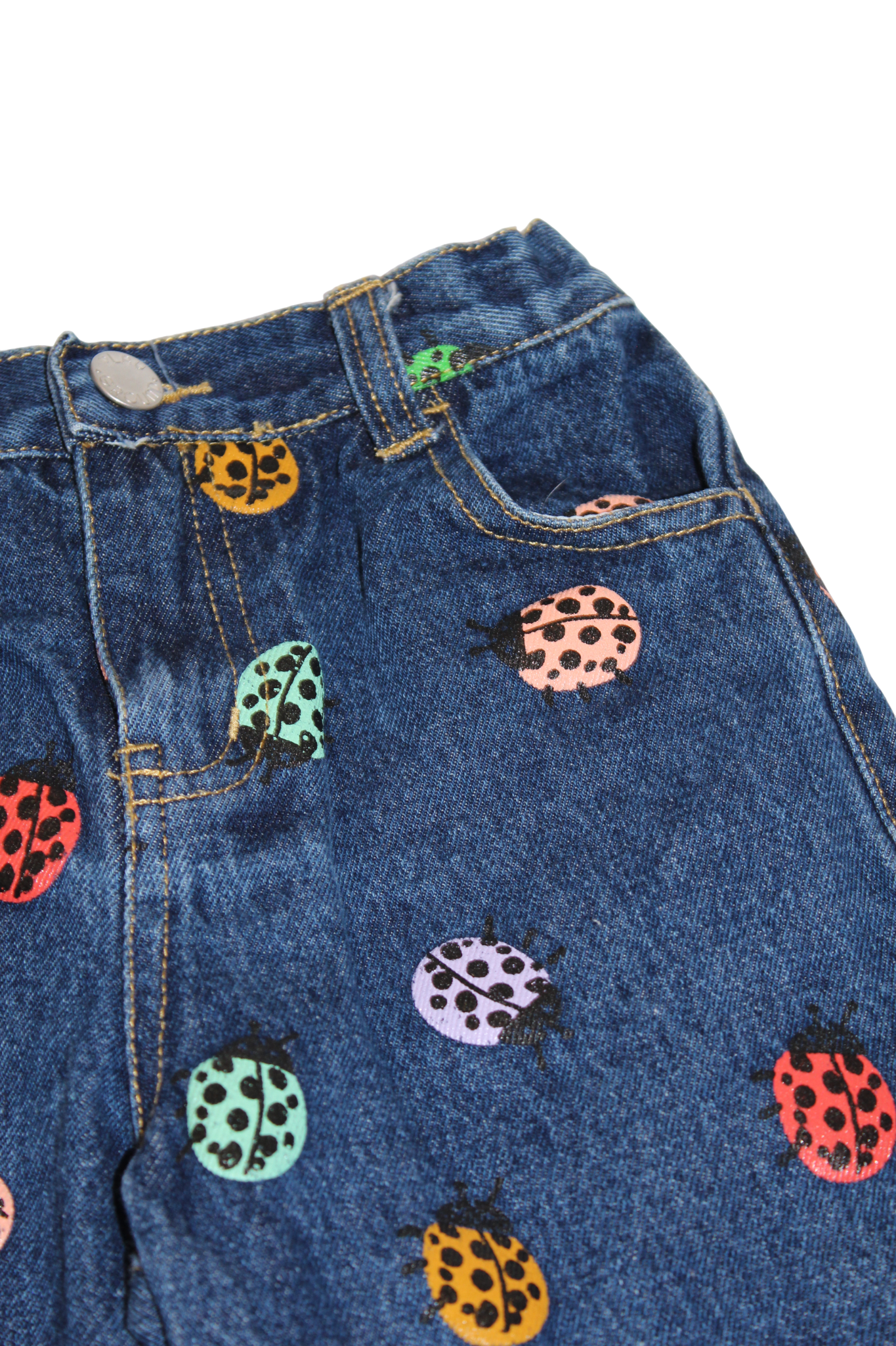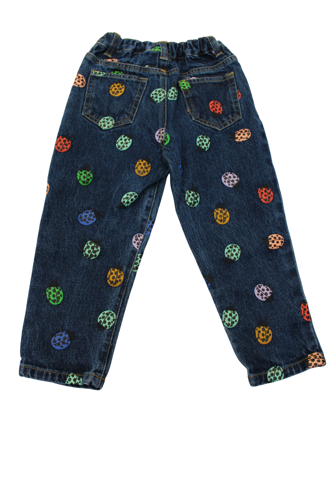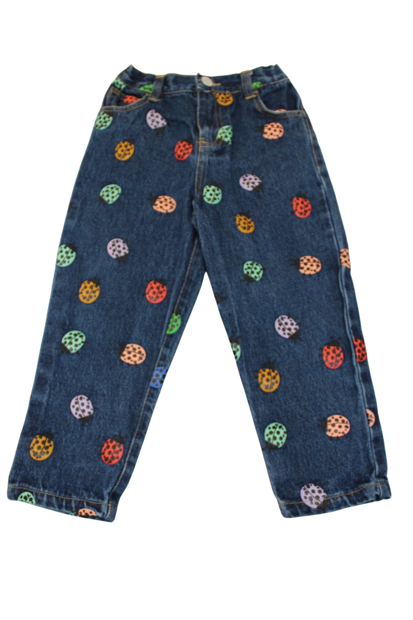 These Gorman Playground Jeans for kids aged 3-4 bring fun to every outfit with their charming ladybird print. Crafted for comfort and durability, they’re perfect for little explorers who love to play and move freely. Brighten up playtime with a touch of whimsy in every step! Very good condition.