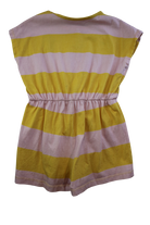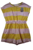 Brighten up playtime with this cheerful yellow and pink striped playsuit, perfect for little adventurers aged 3-4. The vibrant colour-block design brings fun and energy to every outing, while the comfortable playsuit silhouette keeps kids moving freely. Whether heading to the park, playground, or a casual day out, this Gorman piece combines style with practicality. A playful wardrobe essential that celebrates childhood joy! Very good condition.