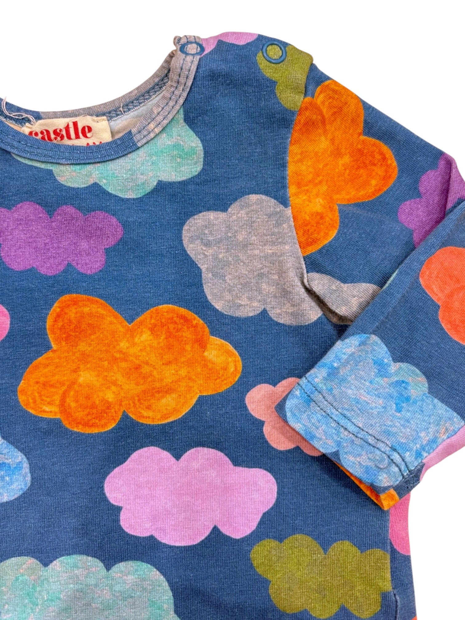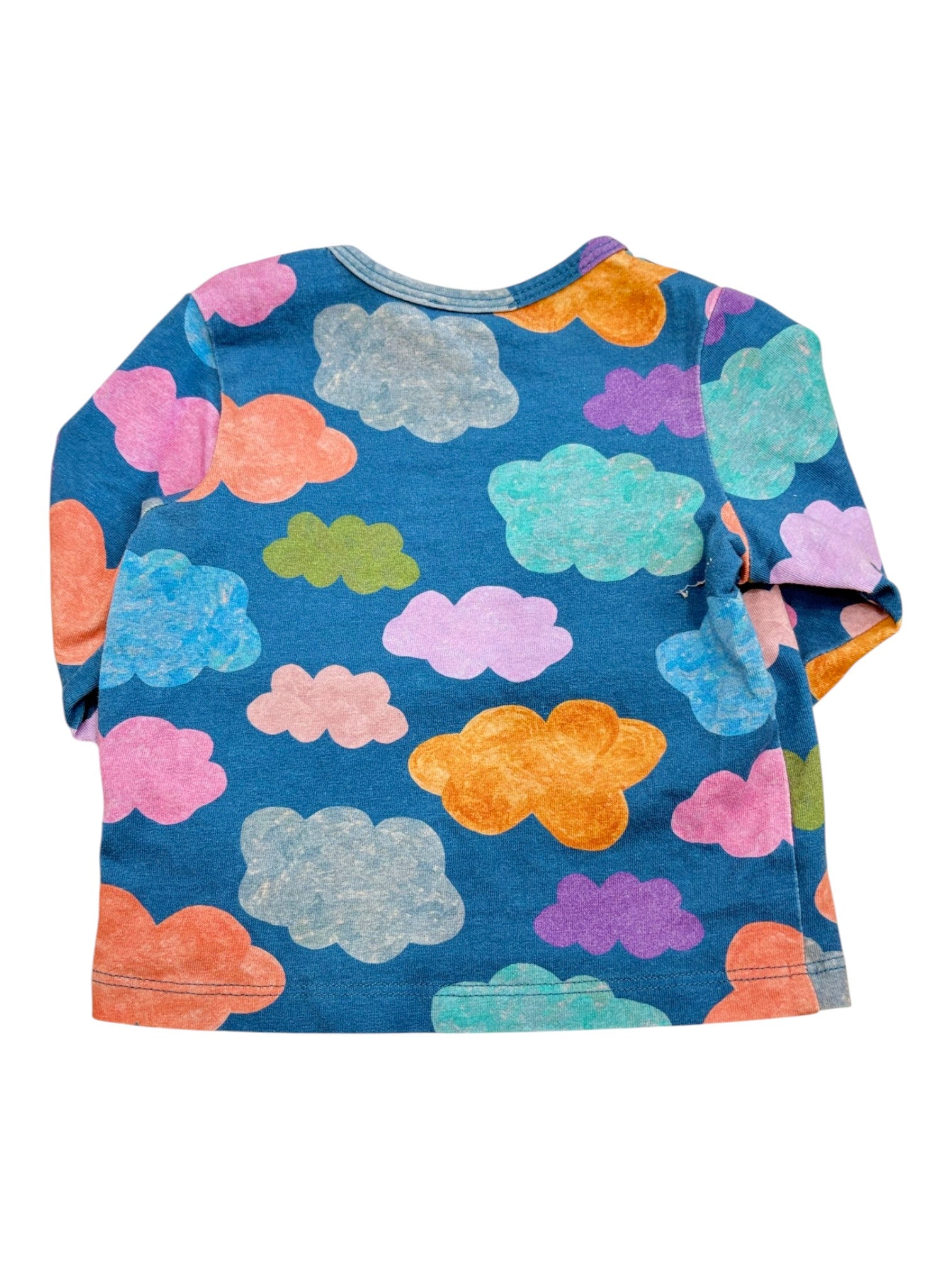 Wrap your baby in softness with this adorable blue long-sleeve top, paired with a multicoloured cloud print. Crafted from organic cotton and elastane, it offers gentle stretch and comfort for all-day play and snuggles. Very good condition.