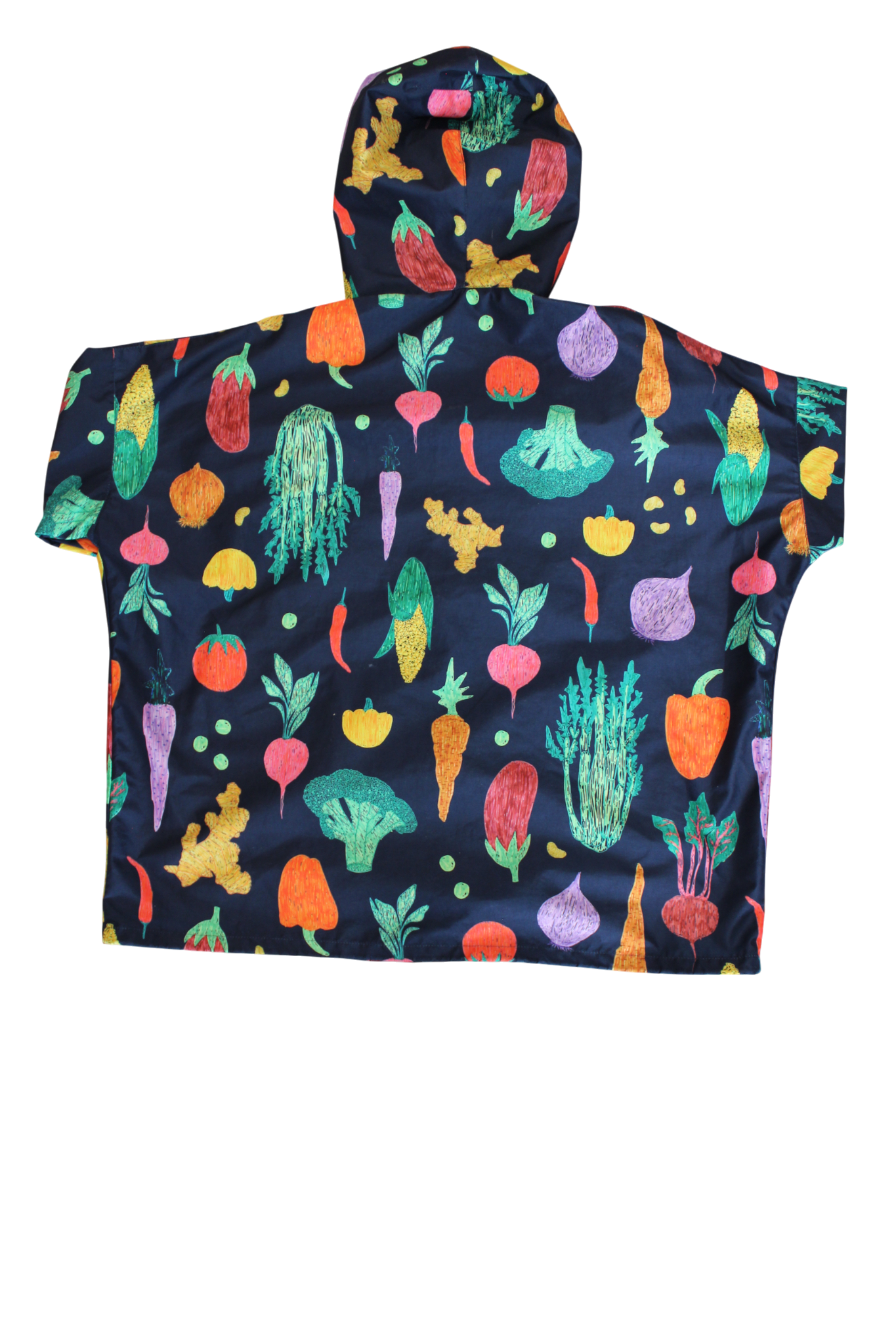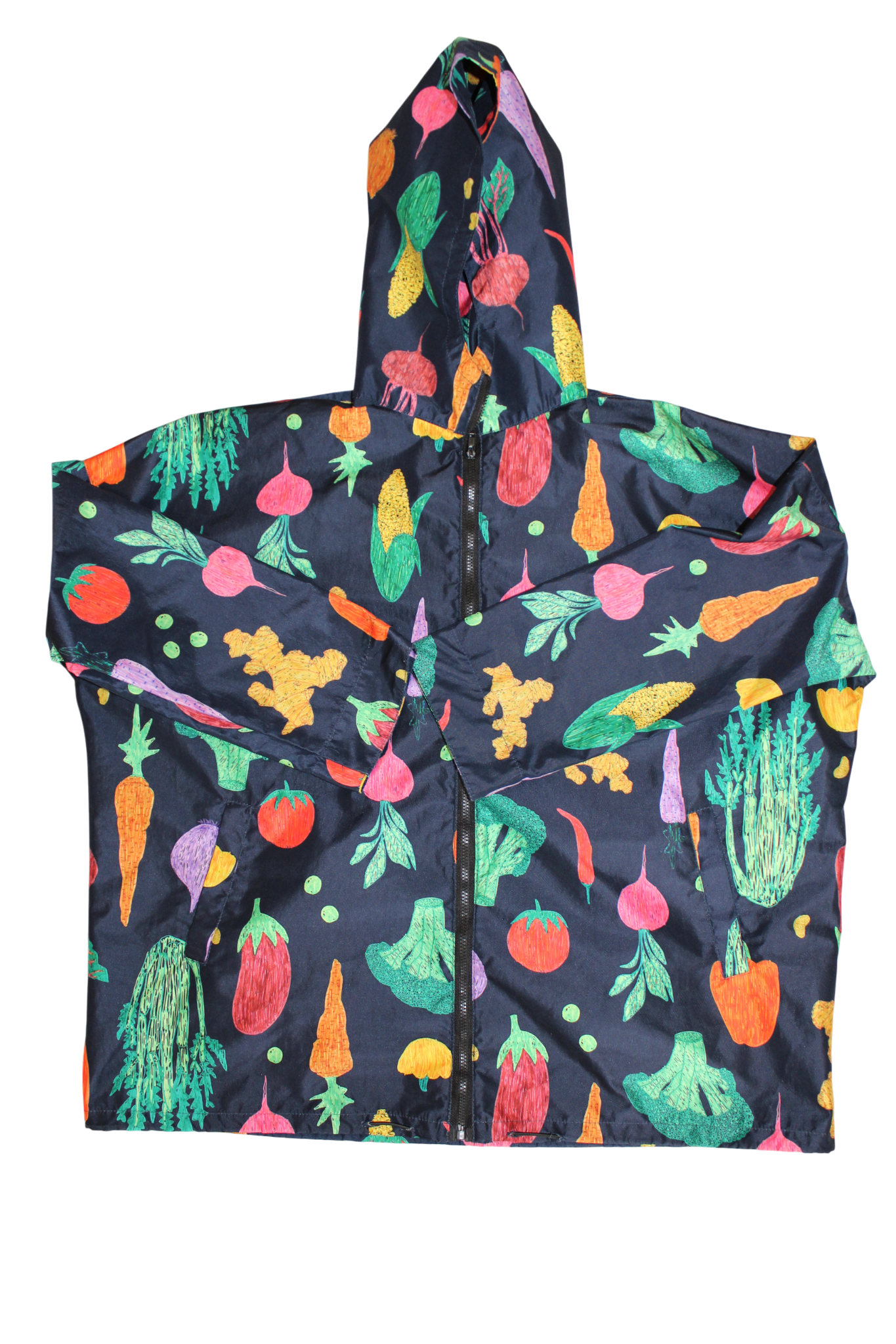 Keep your little ones dry and cheerful with this playful vegetable print raincoat! Designed in a boxy style for extra comfort and ease of movement, it's perfect for kids aged 6 to 8. The vibrant, nature-inspired pattern brings fun to rainy days, while the durable fabric ensures reliable protection from the weather. Easy to zip on and off, it’s the perfect companion for puddle jumping and outdoor adventures. Good preloved condition.