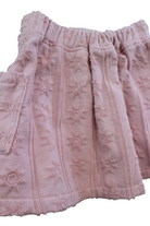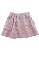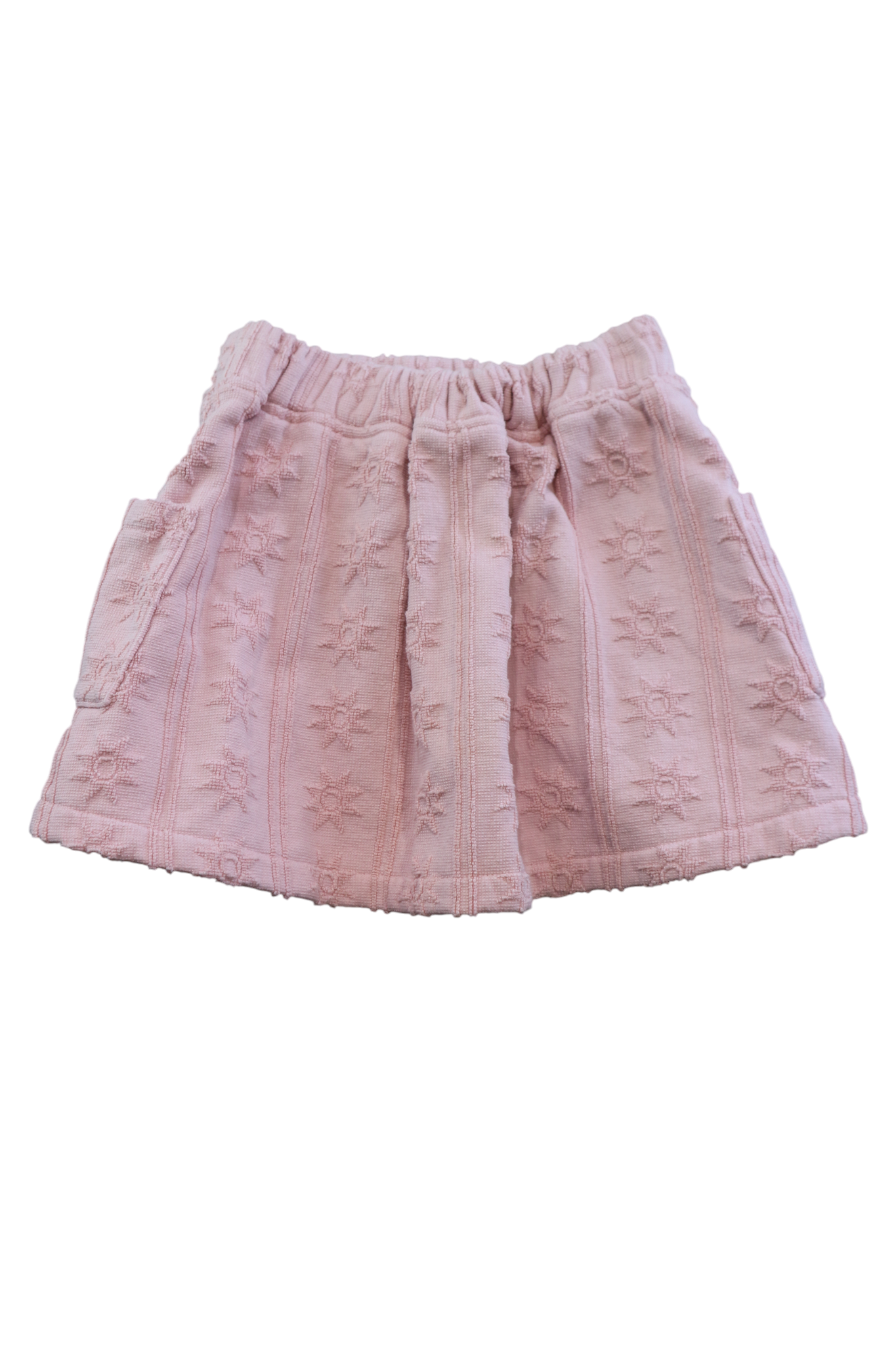 Grown pink cotton terry skirt with star print and side pockets, size 4.