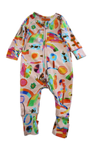 Halcyon Nights zip front jumpsuit in pink with colourful print, size 00. Cotton/elastane.