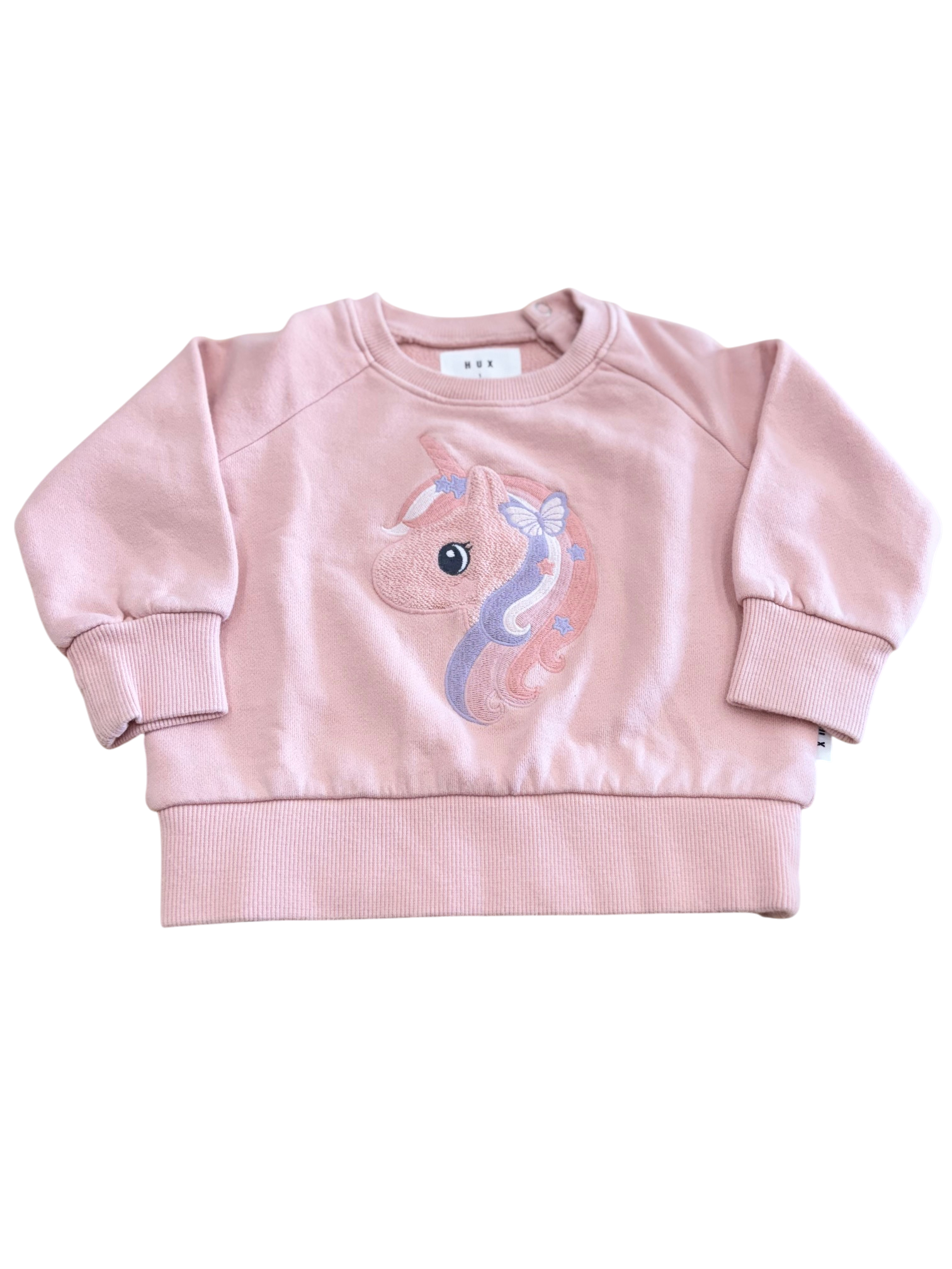 Hux pink unicorn jumper in size 1. 100% organic cotton.