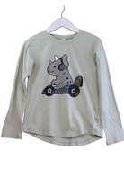 Hux long-sleeved t-shirt in green with cute rhino print, size 7. Organic cotton/elastane.