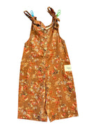 These brown, lightweight Kapow Kids overalls in size 0 are perfect for your little one’s summer adventures. Made from 100% cotton, they feature a warm floral print, playful tie-shoulders, and charming button details. The wide-leg design keeps your baby comfy and cool, ideal for sunny beach days or backyard fun.