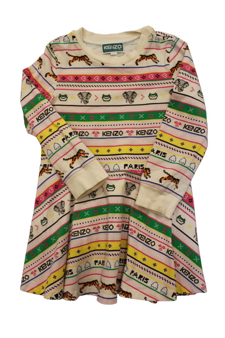Kenzo Kids patterned long-sleeve cotton jersey dress. Good condition overalls, but there are marks on the sleeves and on the back as shown.