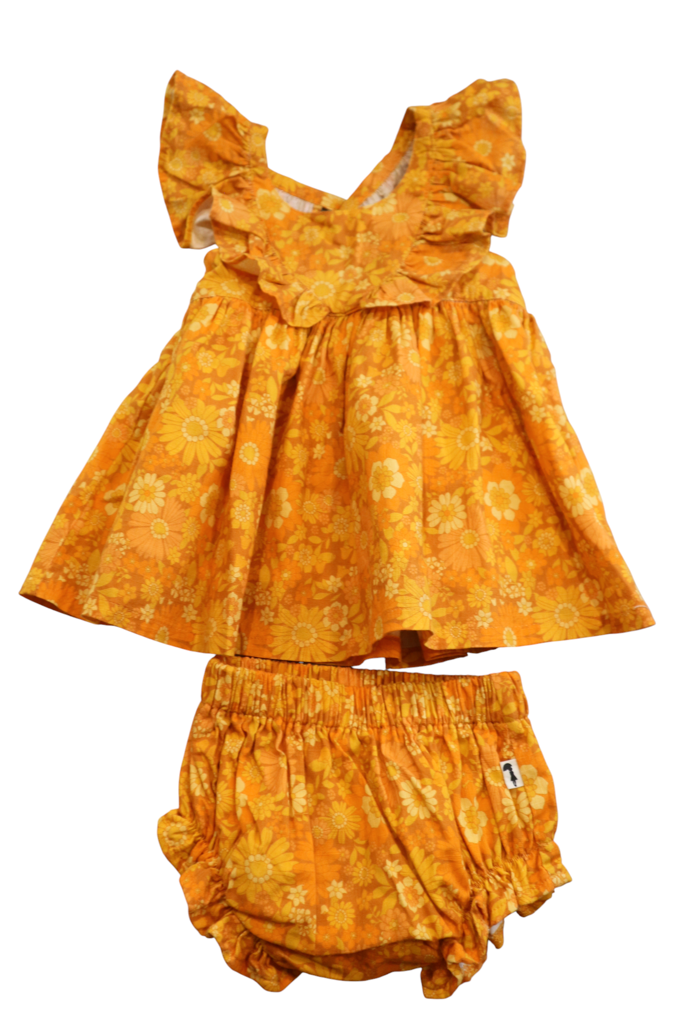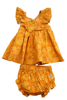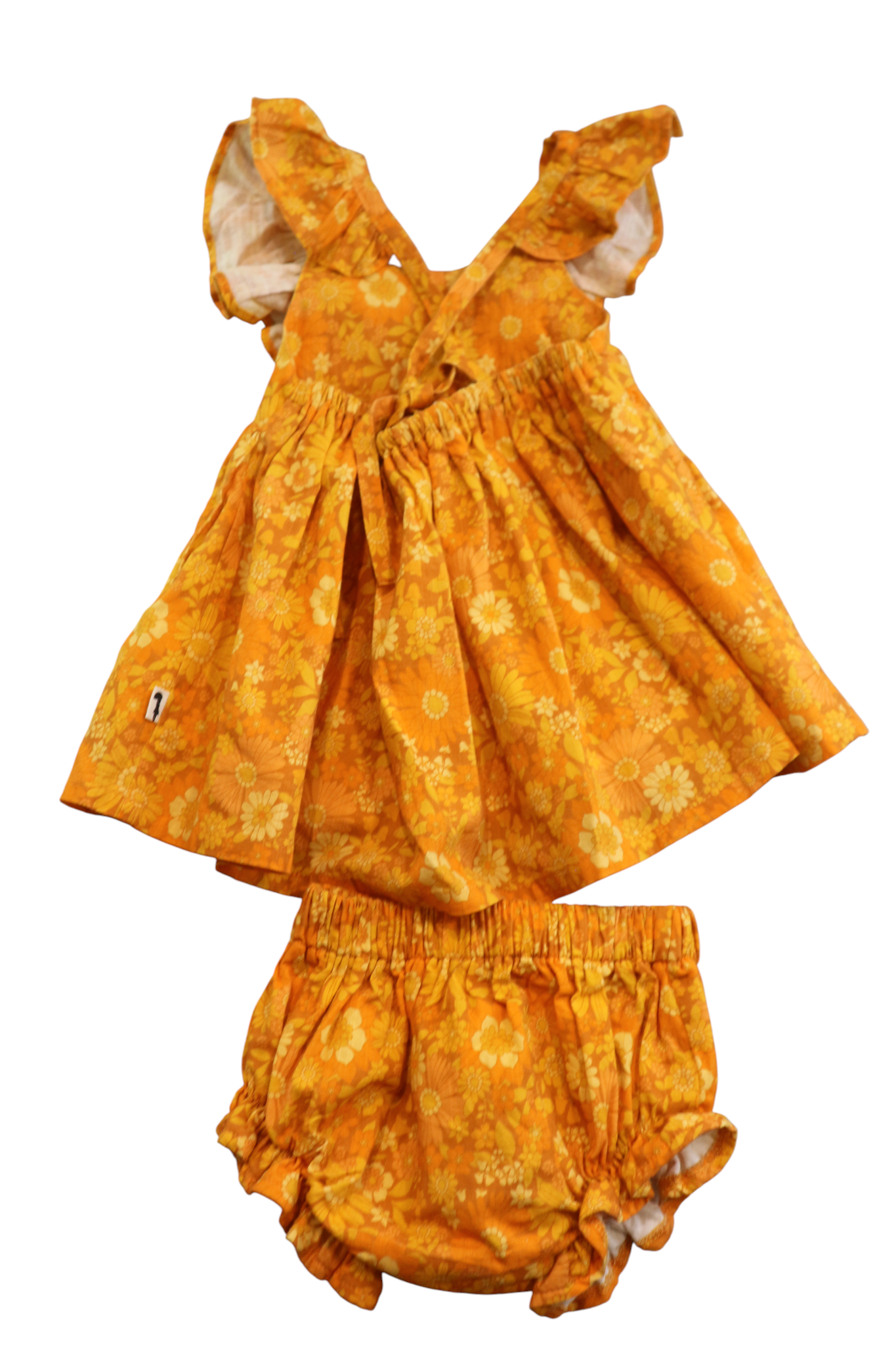 Lacey Lane cross-back orange floral dress with matching bloomers in size 1. Cotton.