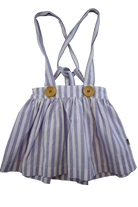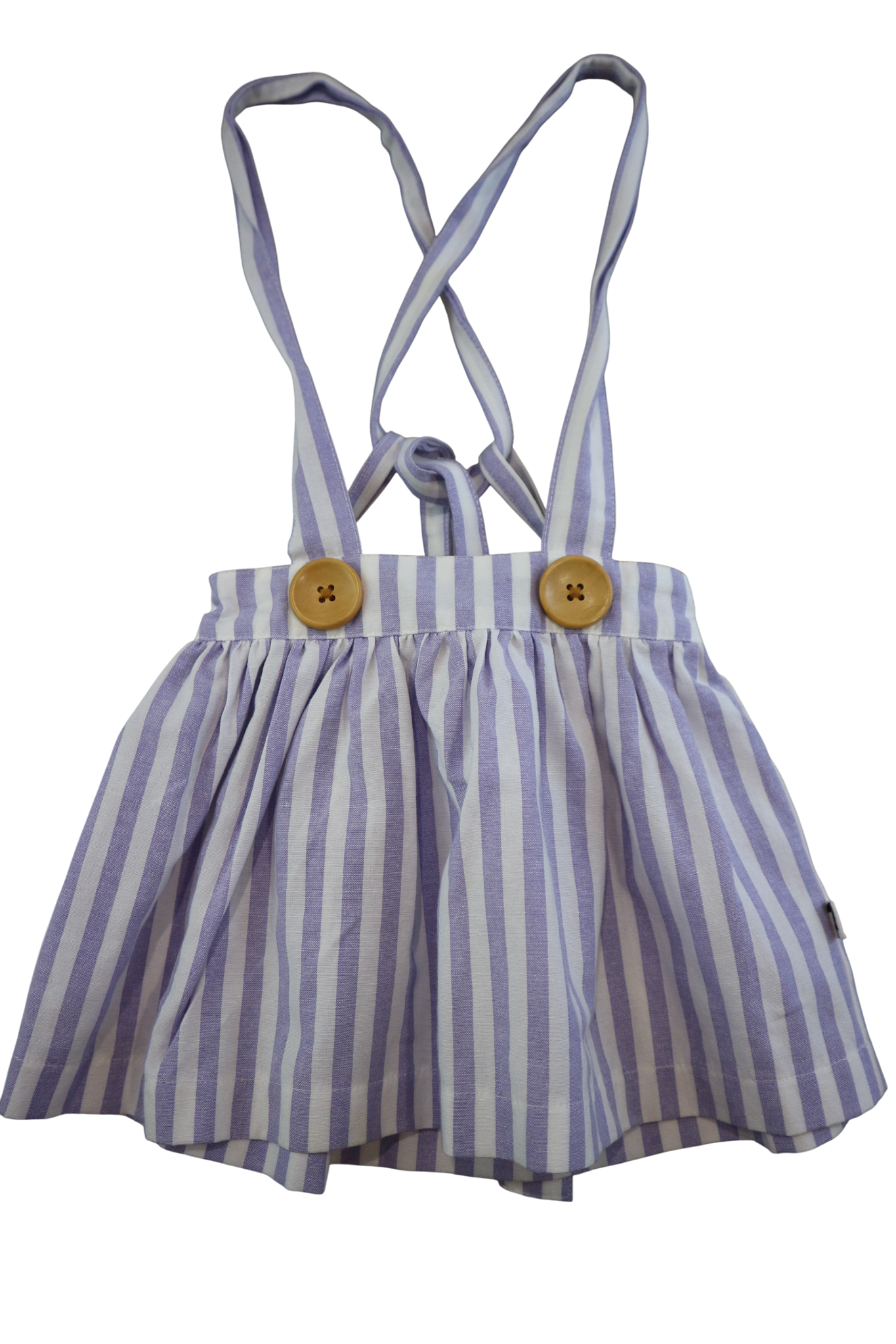 This adorable purple stripe skirt is perfect for little ones who love to twirl! Featuring charming shoulder straps that keep everything in place during playtime, it's both practical and stylish. The vibrant purple stripes add a fun pop of colour to any outfit, while the comfortable fit ensures your toddler can move freely. Ideal for everyday wear or special occasions, this skirt is a wardrobe essential that grows with your child's playful personality.
