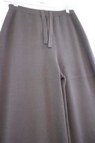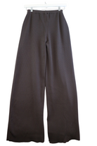 Legoe Heritage ribbed wide leg pants with small slits at ankles in chocolate, size XS. Nylon/viscose.