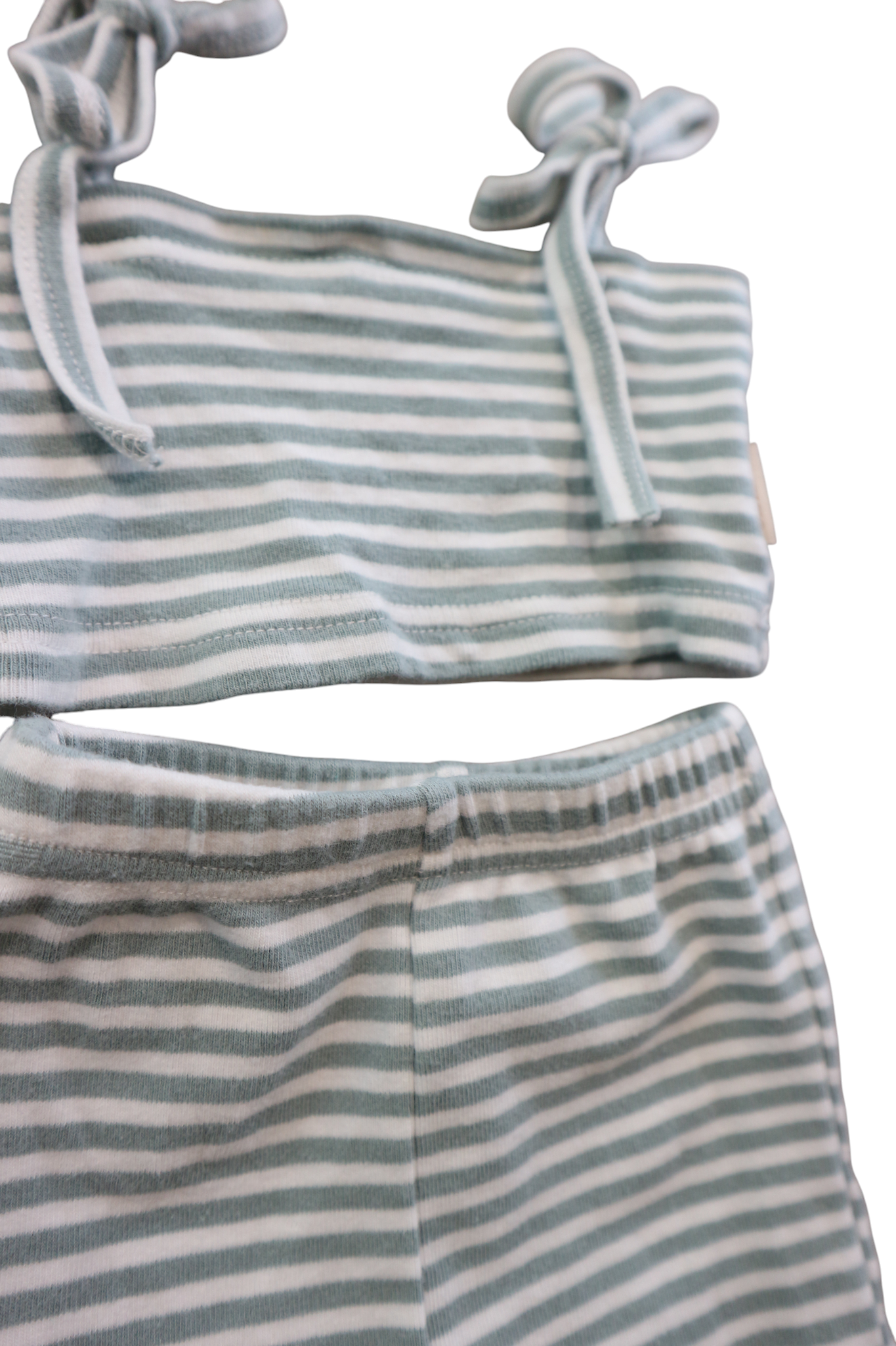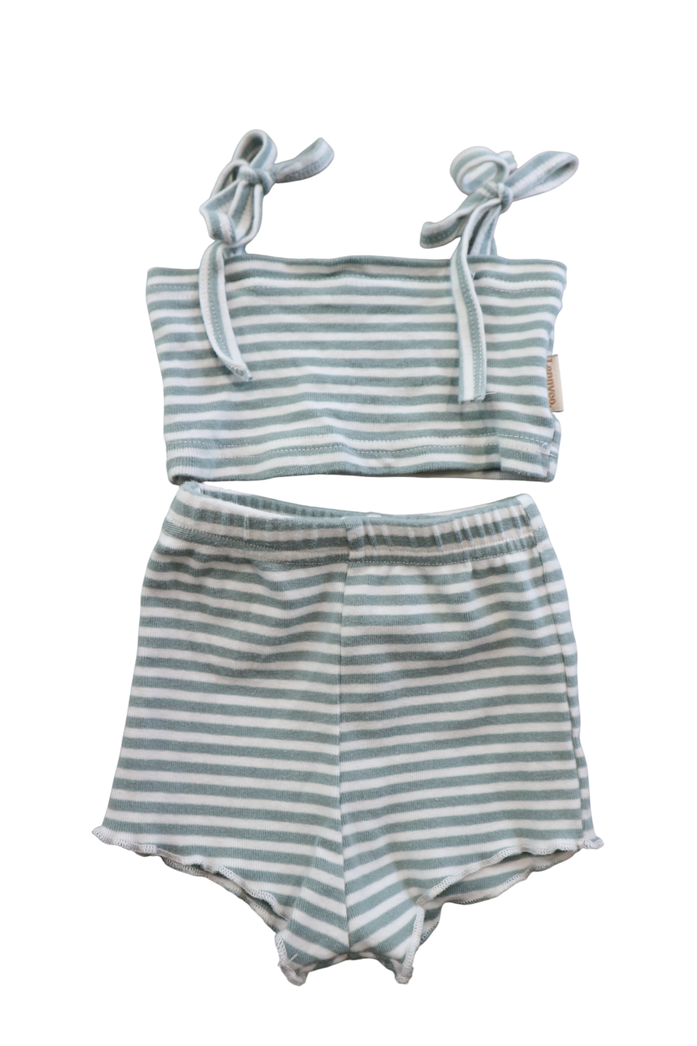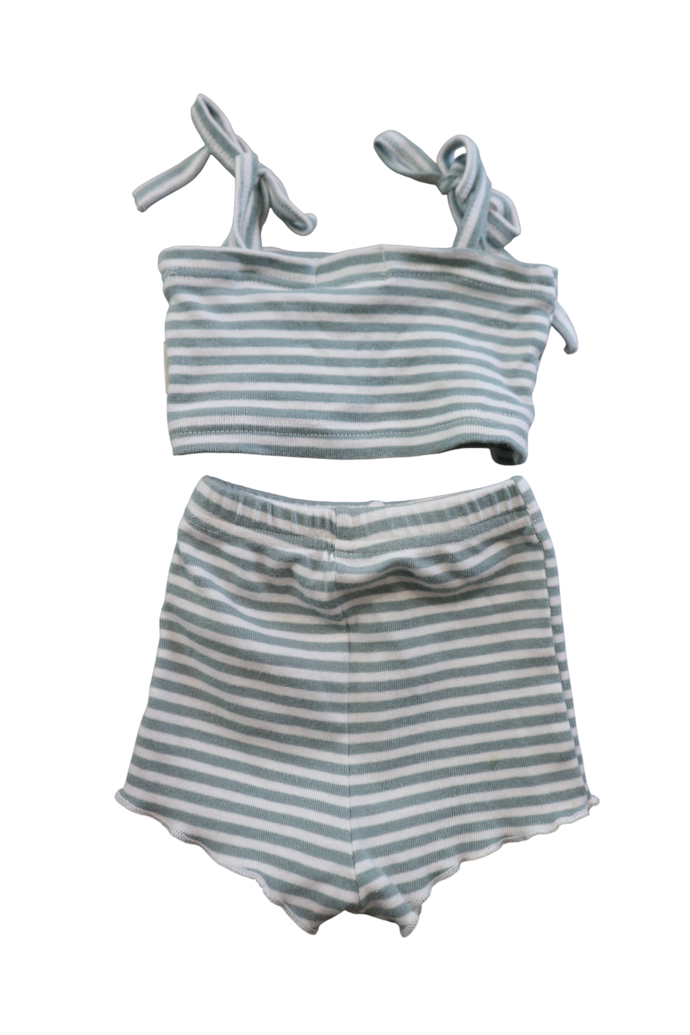 Lennyco. sage and with stripe cropped top and shorts set, size 00. Cotton/spandex.