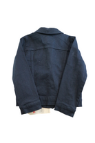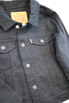 Levi's black denim jacket with snap button closures, size 4. Cotton/elastane.