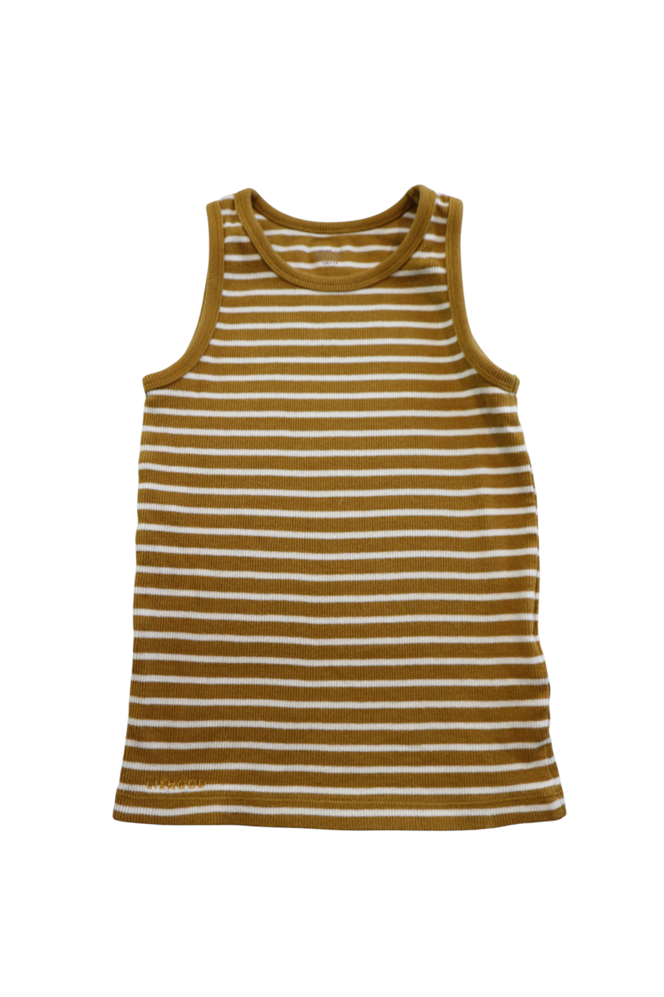 Liewood brown with cream stripe tank in size 128/134 (7-8yrs). Organic cotton.