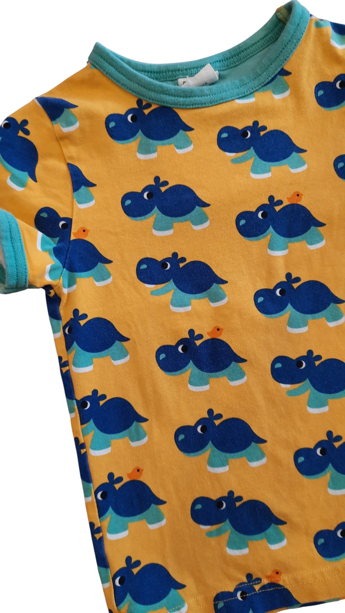 Maxomorra yellow hippo print t-shirt in size 3-4yrs.