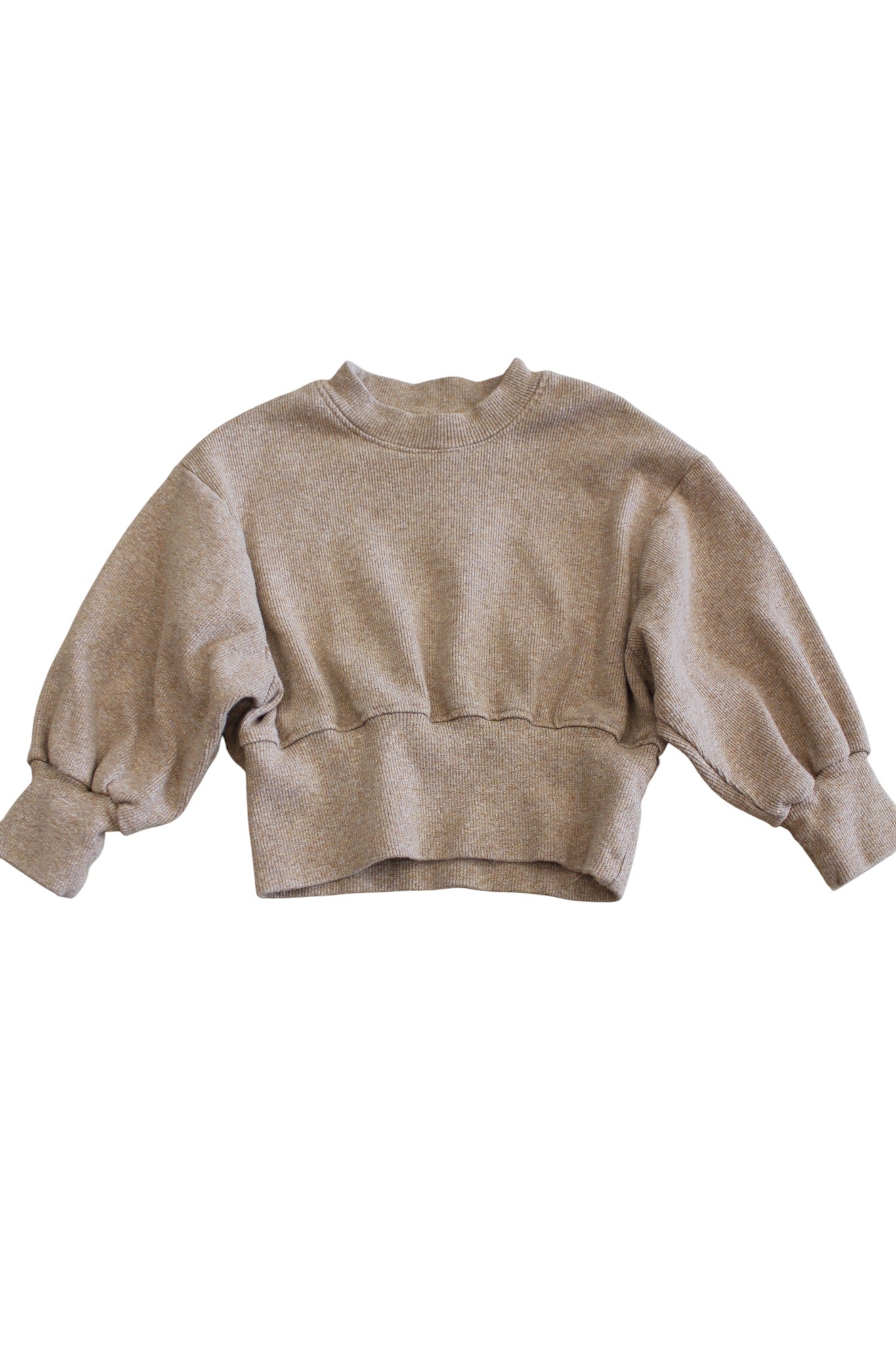 Millk brown ribbed batwing jumper in size 6-12m. Cotton/elastane.