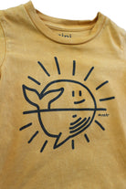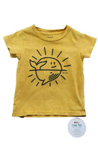 Mini Munster washed look mustard print t-shirt in size 00. 100% cotton.