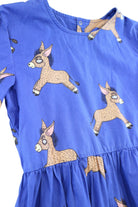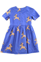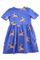 Mini Rodini blue dress with all over donkey print, size 128/134 (7-9yrs). Organic cotton.