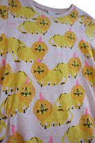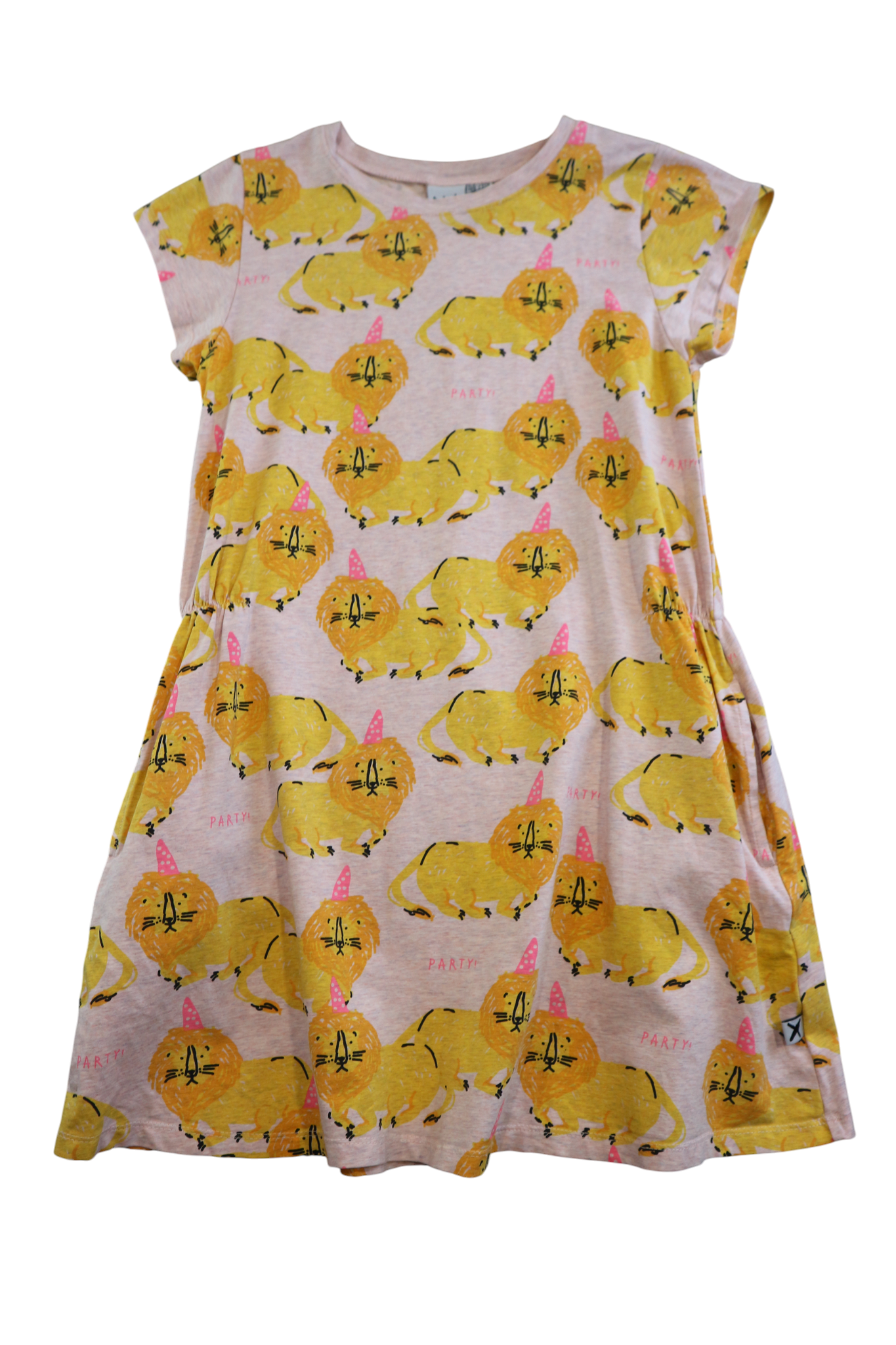 Minti lion print 'Party' dress in pink marle, size 10. Cotton/elastane.