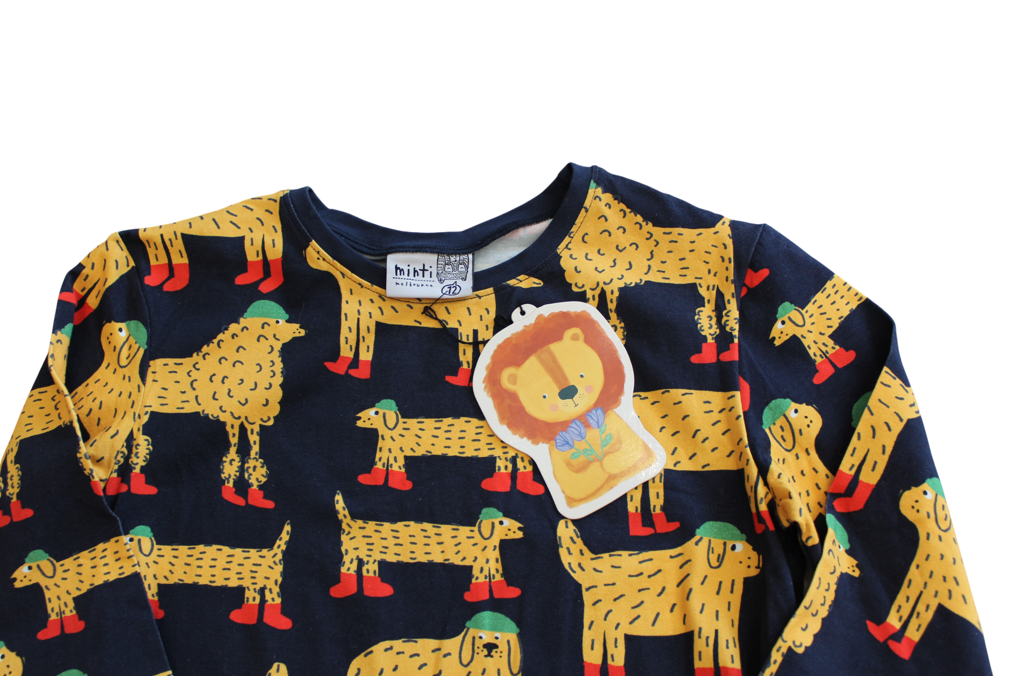 Meet the perfect dress for dog-loving kids! This charming Minti dress features an adorable dog pattern that brings personality and fun to any occasion. Size 12.