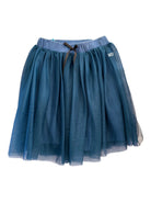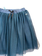 The Minti Skirt in size 10 combines comfy cotton and elastane lining with a flowy navy polyester tulle overlay. It features an easy elastic waistband and a charming black bow detail, making it perfect for playful kids who love twirling in style. Ideal for everyday fun or special occasions. Excellent condition.