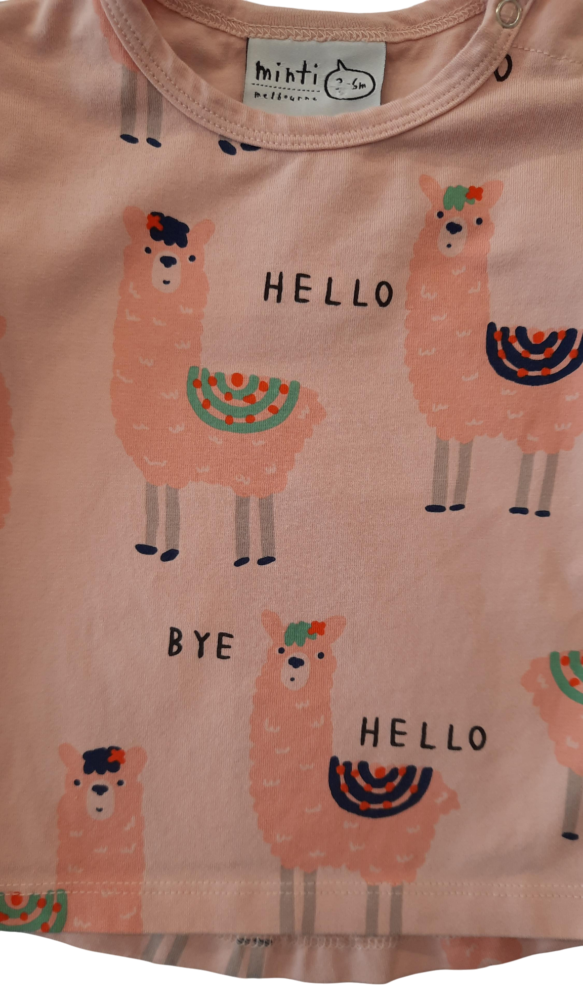 Hello Funky Alpaca print T. Neck popper opening, perfect everyday wear.