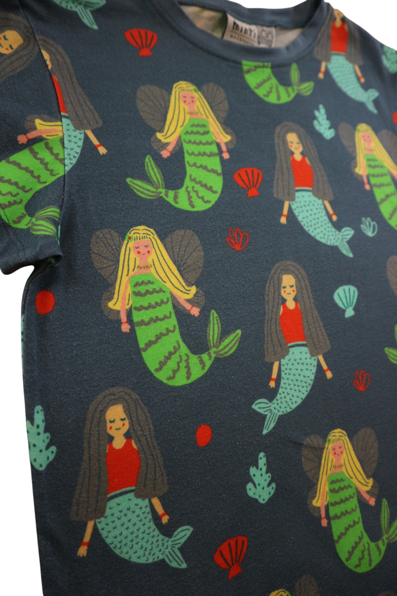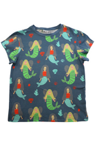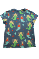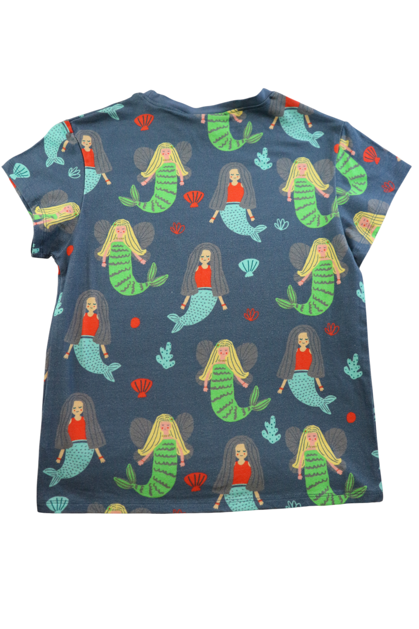 Minti blue mermaid print t-shirt in size 10. Cotton/elastane.