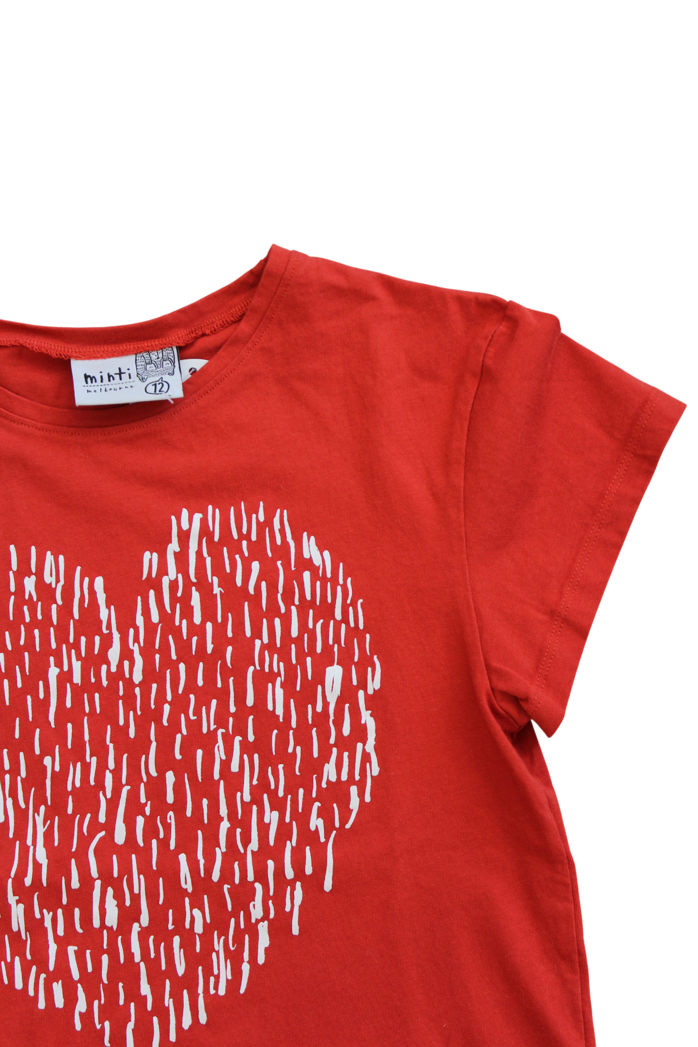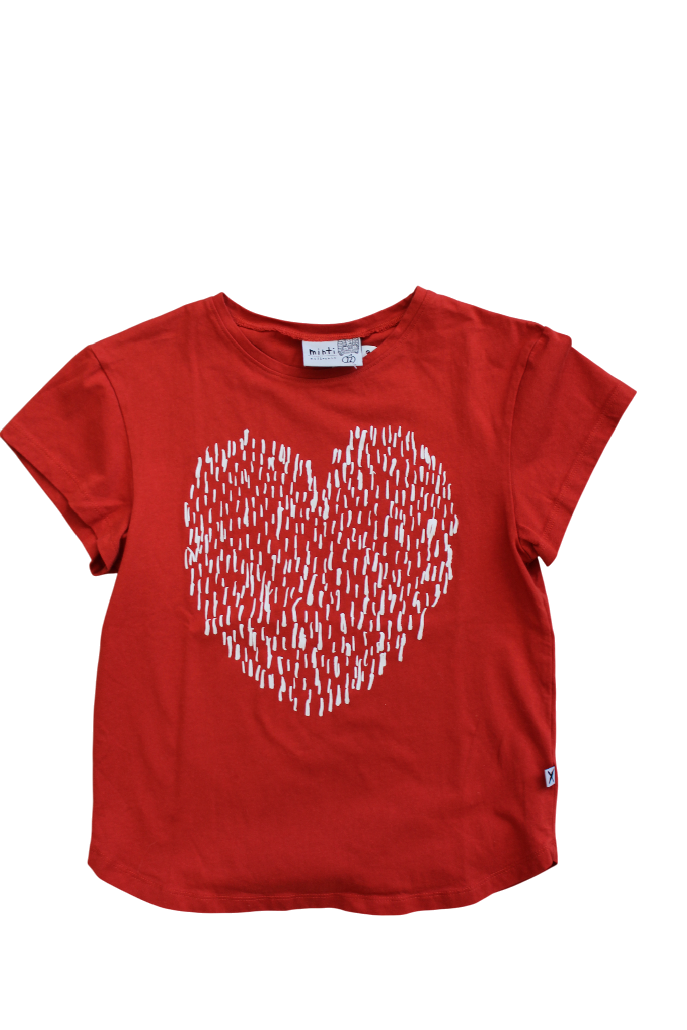 Spread the love with this vibrant red tee featuring a striking white heart graphic. This playful piece combines comfort with character. Size 12.