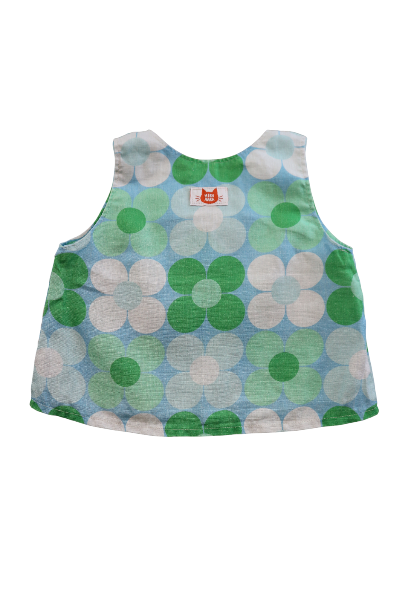 Mira Mira Designs boxy tank in green/blue flower print, size 4. Made in Australia. Feels like linen.