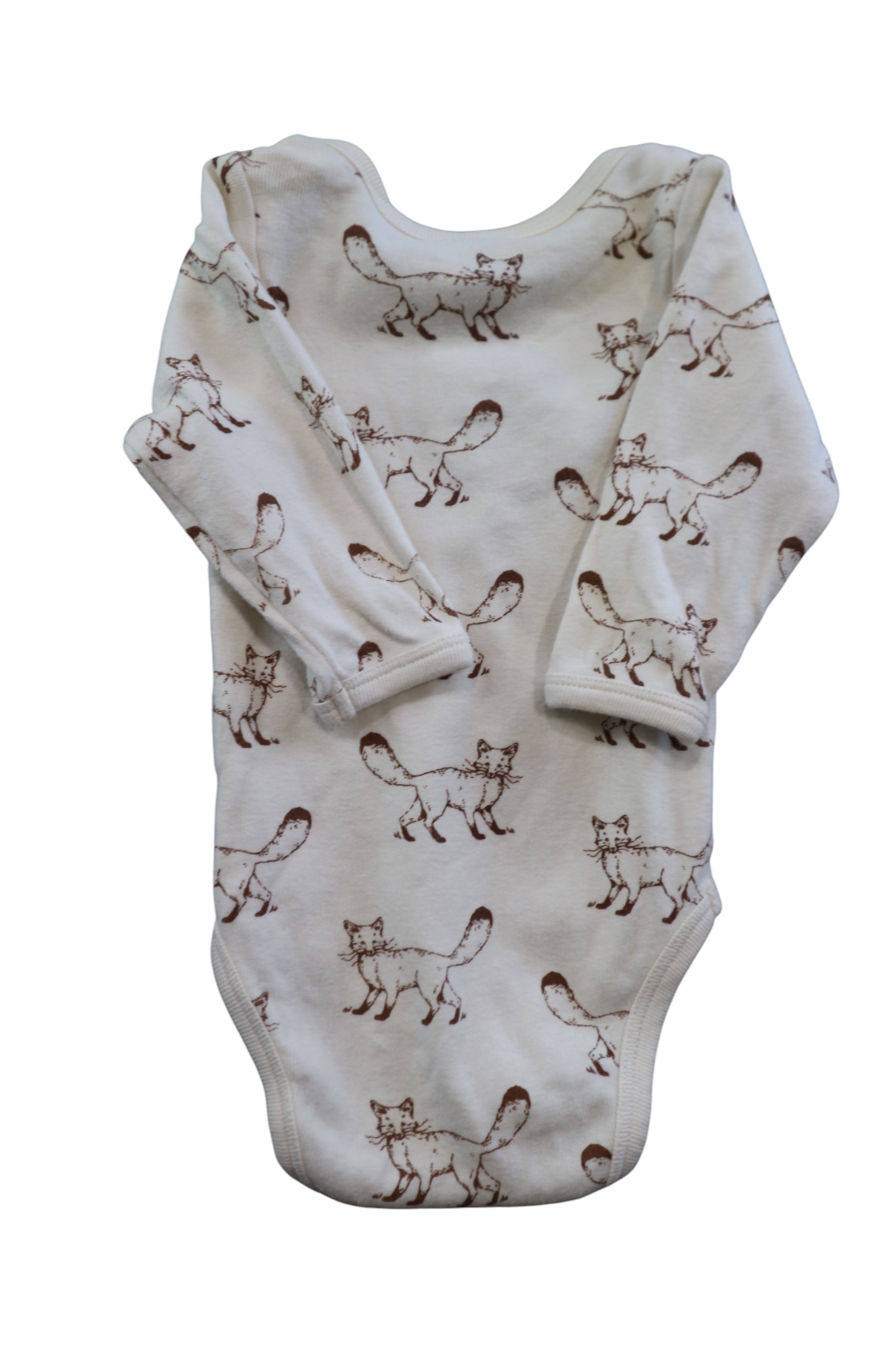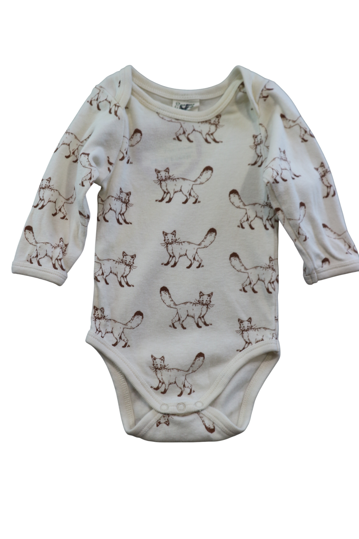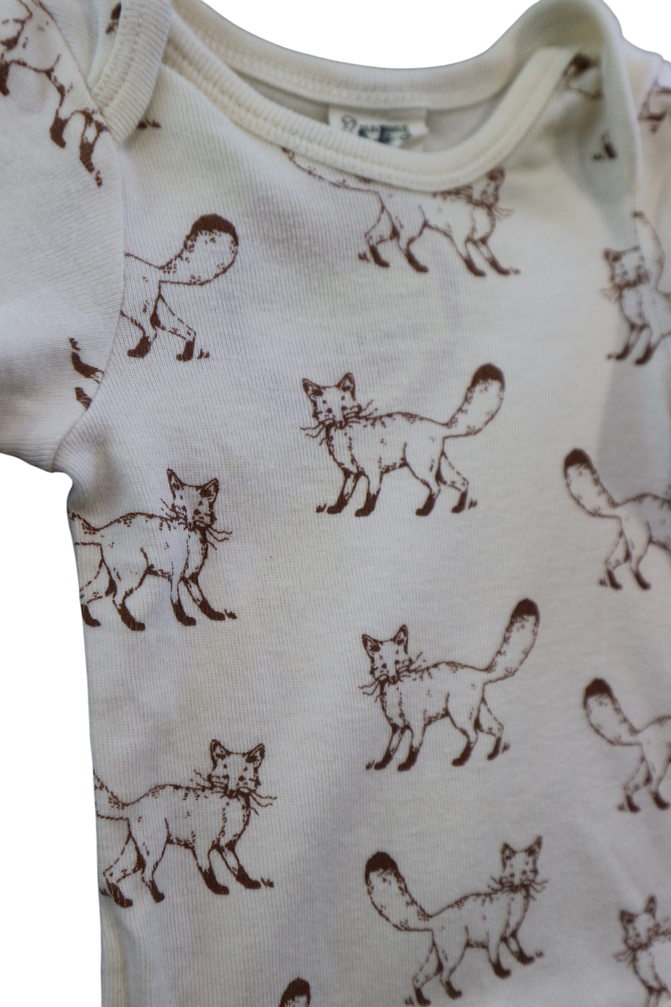 Nature Baby cream fox print bodysuit in size 000. Organic cotton.