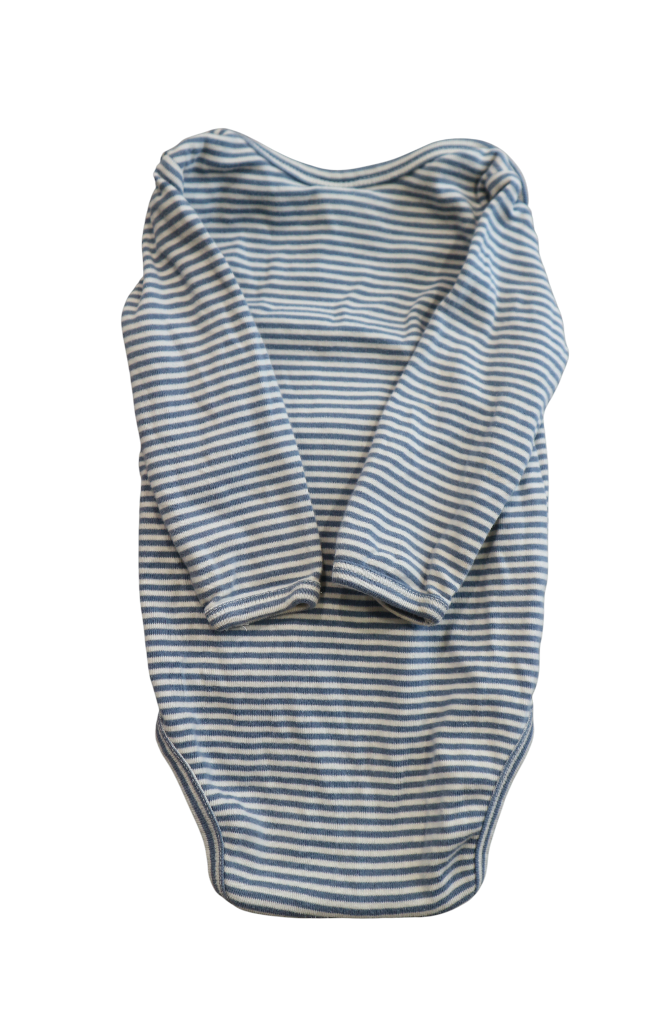 Nature Baby blue and cream stripe bodysuit in size 0. Organic cotton.