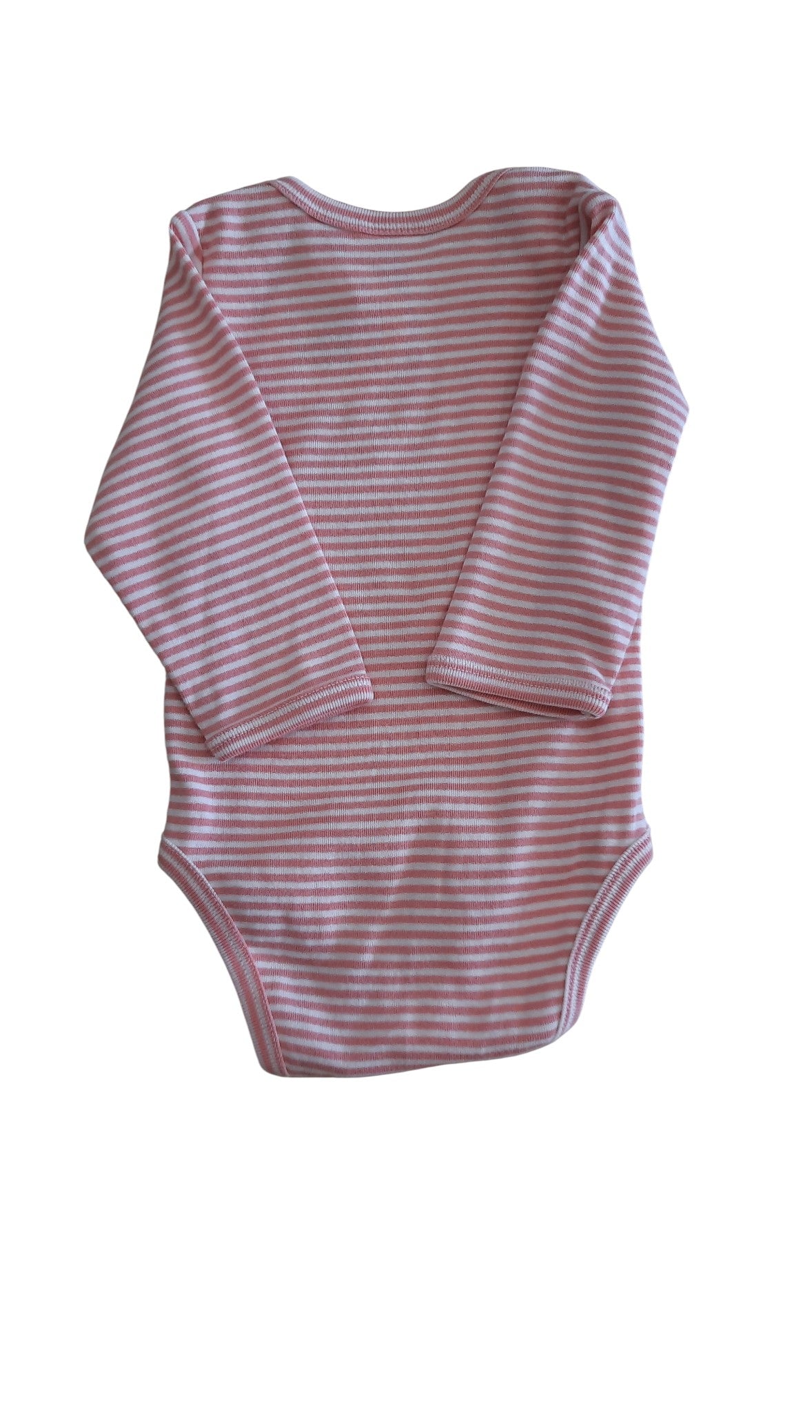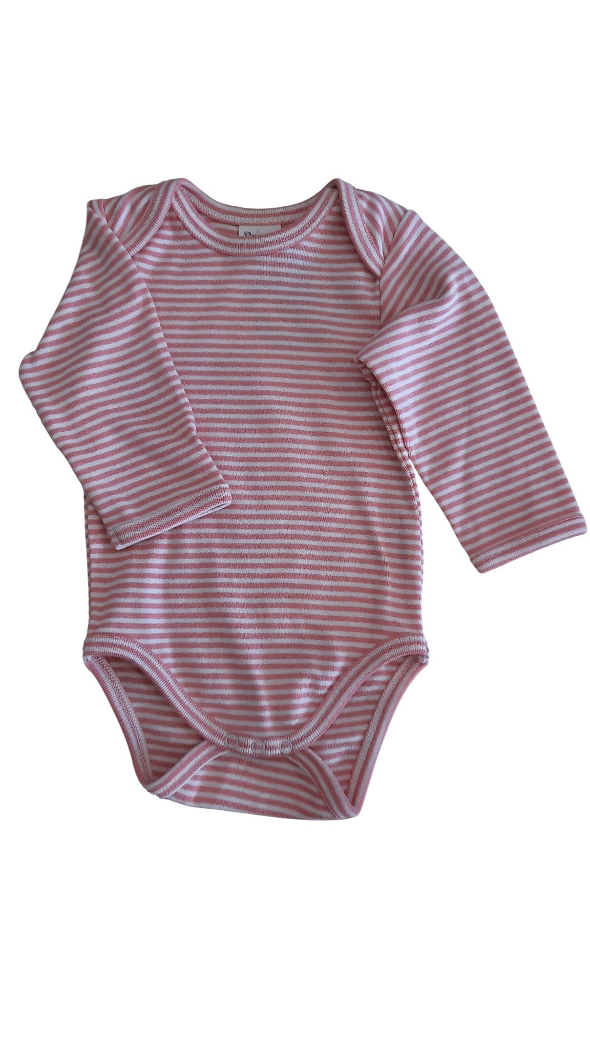 Nature Baby pink and cream stripe bodysuit in size 00. 100% organic cotton.